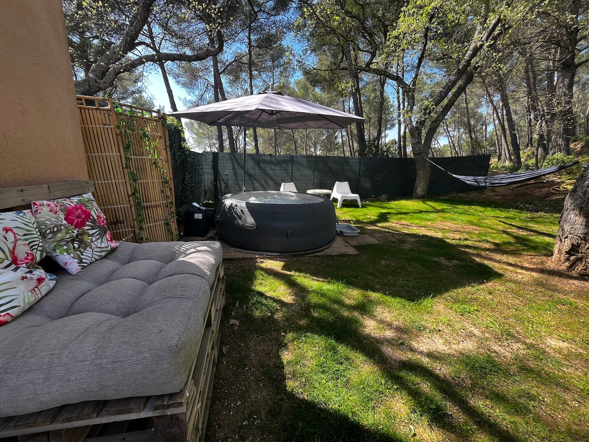 Dođite i uživajte u jugu Francuske u ovoj mirnoj provansalskoj kući na selu sa svojim spa centrom tokom cijele godine;-) Bit ćete manje od 10 minuta od centra grada Aix en Provence dok uživate u pjevanju cvrčaka i ptica! Također u blizini mnogih znamenitosti i samo 1 km od spontanog Château de la Gaude;-) Poželjet ćemo vam dobrodošlicu u našoj čahuri i bit ćemo vam na raspolaganju da vam ponudimo miran i opuštajući boravak