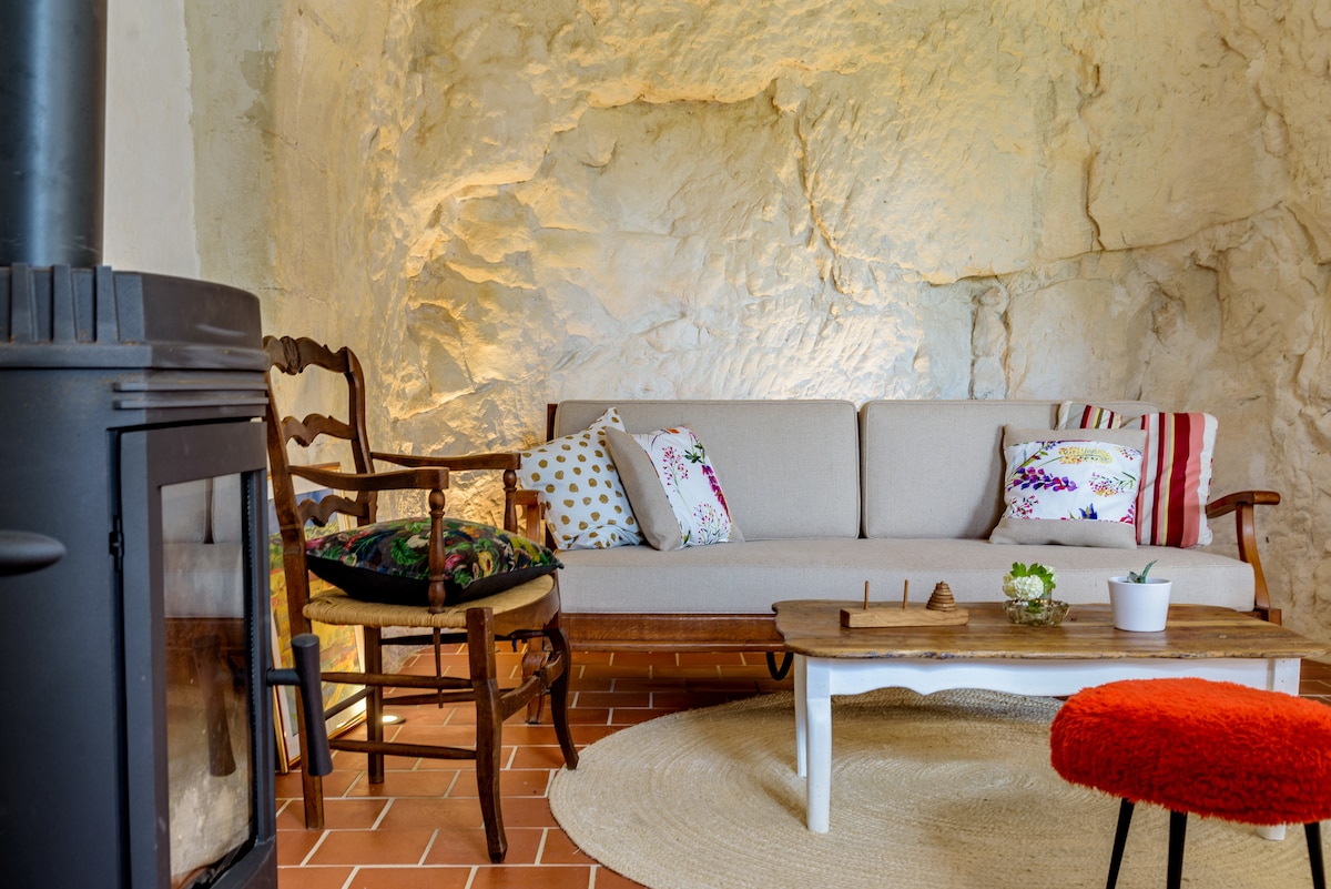 Naša pećina se nalazi na rubu Lochesa, s izvanrednim pogledom na dvorac, privatnu terasu i roštilj; može primiti par, a možda i dvoje djece. U neposrednoj blizini centra grada, možete ostaviti automobil na malom privatnom parkingu i sve raditi pješice (10 minuta od centra grada). Također možete otkriti prekrasne lokacije: Amboise, Chenonceaux, Beauval Zoo, Montrésor... Nudimo, kada možemo, doručak prvog dana.