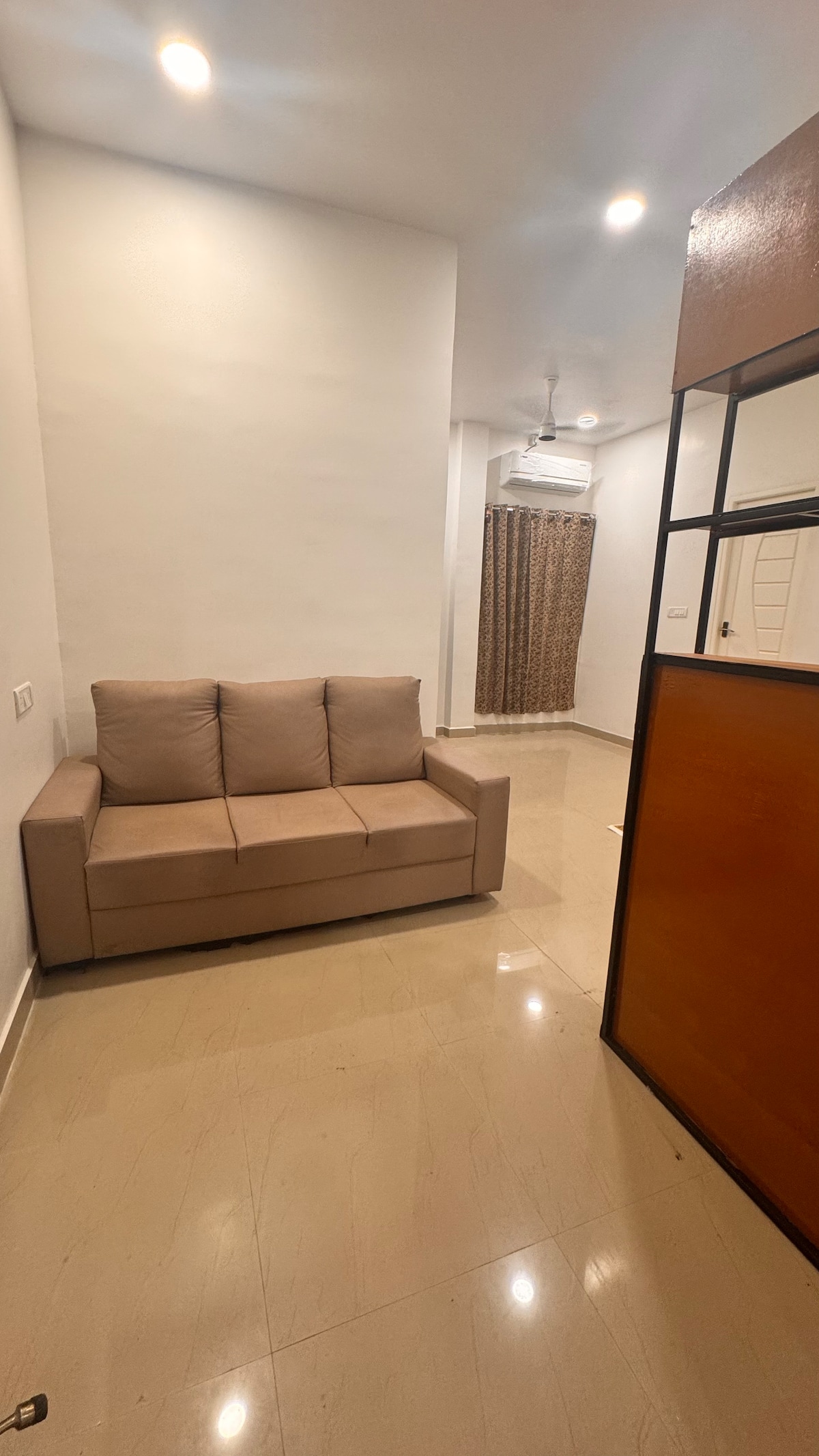 Mi smo porodična firma koja se bavi renoviranjem i iznajmljivanjem smještaja i koja je zaradila naziv za sebe u ponudi kvalitetnih usluga po povoljnim cijenama. Oglas Novouređeni 1 BK/Studio/Aneks dostupan je u vrlo traženom području u Kellys Roadu (Napomena: Opp A.K.N. Nursing Home & BSNL ured u blizini bolnice Ayesha) Spavaća soba-A/c 1) En-suite [u prilogu WC] s bračnim krevetićem 2) Prostorija dobre veličine 14 stopa x 12 stopa s 2 ormarića i) Frižider i voda se mogu obezbijediti. ii) TV je dostupan. Napomena : bez kuhinje