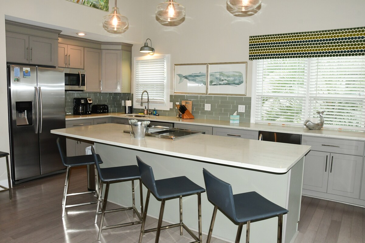 Upoznajte obitelj i prijatelje ispod Palmsa na Sunset Beachu! Smještena jedan blok od Bird Islanda, 12. red na zapadnom kraju, ova novouređena kućica na dvije etaže, spaja urbani luksuz s udobnošću boutique hotela. Spava 8 udobno s puno privatnosti za sve; glavni kat nudi otvoreni koncept življenja i gurmanske blagovaonice s ekraniziranim trijemom, dvije spavaće sobe i kupelj s rubljem. Gore ćete naći spavaću sobu Master Kinga i Queen sa kliznim vratima od obje do privatne gornje palube.
