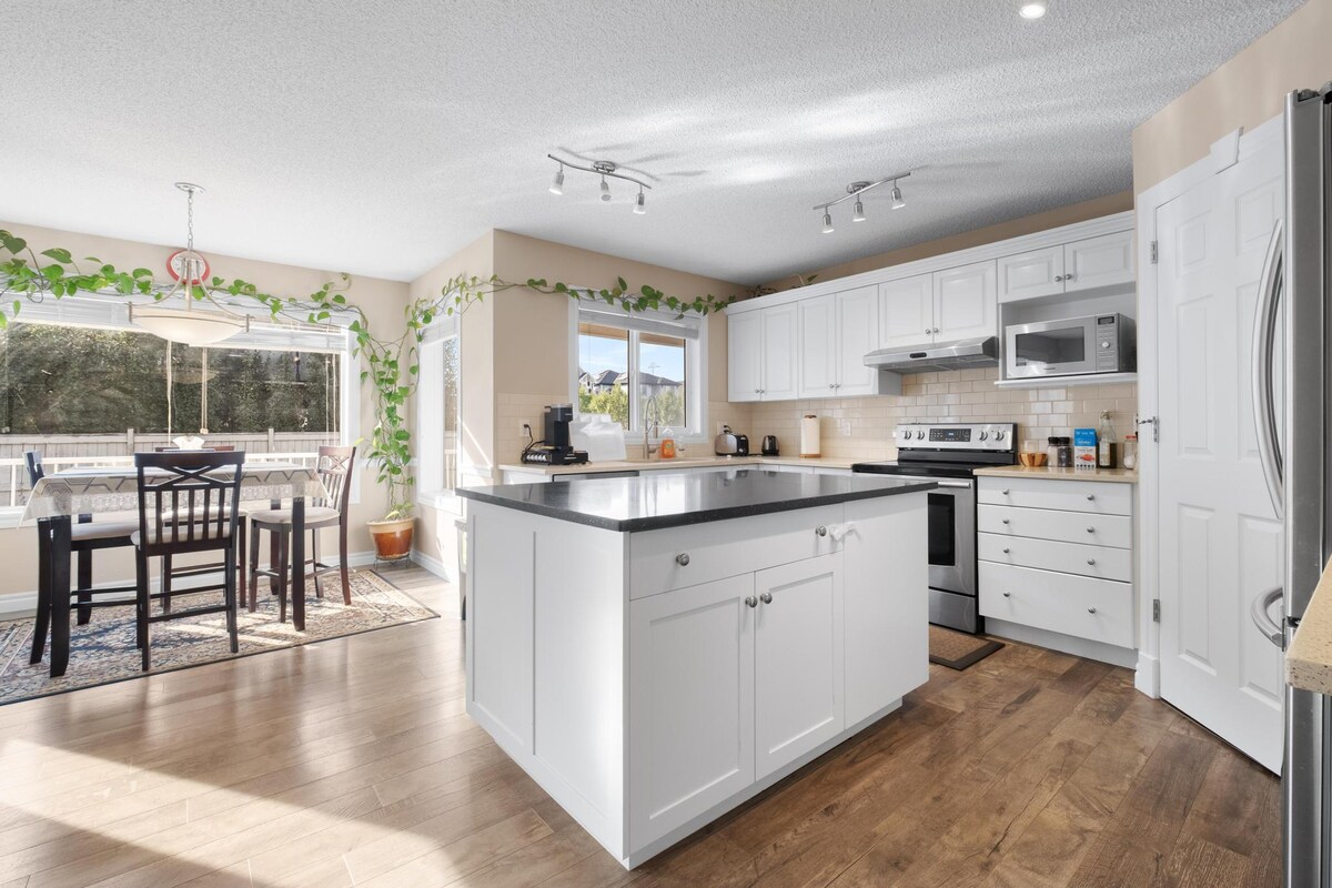 Uživajte u objektu prikladnom za porodice s potpuno ograđenim dvorištem u Chestermereu. Karakteristike uključuju dnevni boravak s pametnim TV-om od 58", 2 trpezarije, vešeraj, kompletnu kuhinju s mašinom za suđe i velikom ostavom, kao i 4 spavaće sobe (2 sa spojenim apartmanima i ormarima) na gornjem spratu. Kuhinja ima šporet, rernu, frižider s ledomatom, mikrovalnu pećnicu, opskrbljeni kafić i veliki otok. Koraci od jezera Chestermere, staze, restorani i trgovine. Savršeno za porodice, velike grupe i ljubitelje prirode tokom cijele godine.