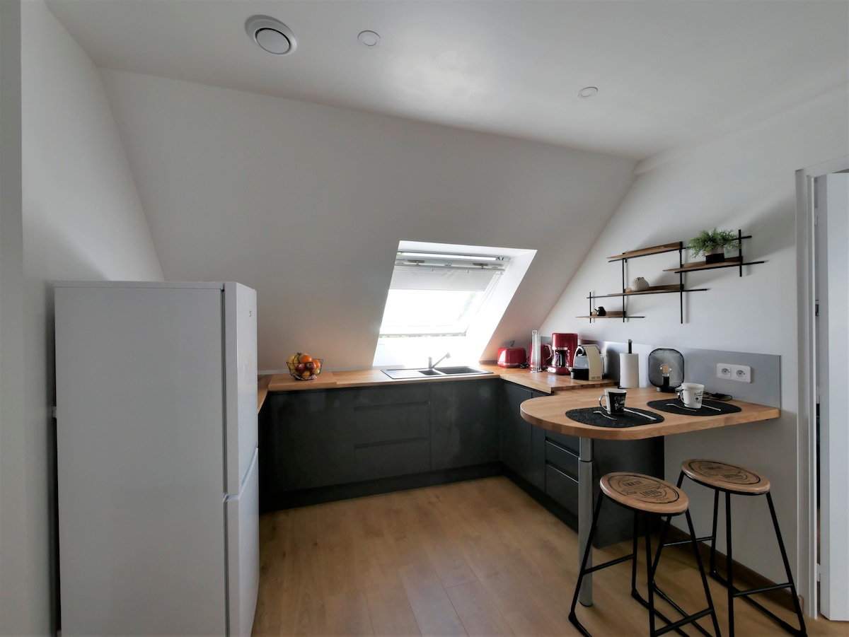 Potkrovlje u hipercentru Rennesa. Idealno smješten u srcu grada, sve se može obaviti pješice! 2 minute od zanatskih radnji u ulici Rue Saint-Hélier, 3 minute od željezničke stanice, 5 minuta od Les Hallesa, barova i restorana iz Rennesa. Ukusno namješteno potkrovlje, veliki stambeni prostor na pola nivoa s lijepom visinom stropa. Opremljena kuhinja s novim uređajima. Veliko kupatilo s kupatilom. 2 prostrane spavaće sobe s bračnim krevetima, jedna s radnim stolom.