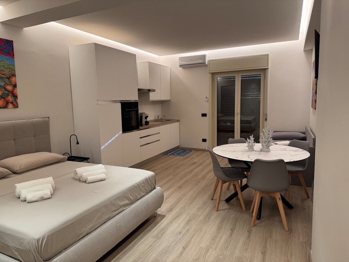 GIARDINI-NAXOS IZNAJMLJUJEMO APARTMAN ISPRED PLAŽE U CENTRALAREI SA VELIKOM terasom koja gleda na PREKRASNI ZALIV NAXOSA, OPREMLJEN SVIM POGODNOSTIMA. U SRCU TURISTIČKOG MJESTA GIARDINI-NAXOS. SASTOJI SE OD 2 SPAVAĆE SOBE, KUPATILA SA TUŠEM, kuhinje sa kaučem na razvlačenje, klima uređaja, mašine za pranje veša, MAŠINE ZA PRANJE SUĐA, interneta (WI-FI), TV-A SA SATELITOM, udaljenog 100 m od BARA, RESTORANA, SUPERMARKETA, BANKE, POŠTE, PLAŽE. za ljude koji vole more i koji žele ići na izlete u obližnje turističke lokalitete Taormina, Letojanni, klisure rijeke Alcantara, vulkan Etna, Catania, Messina i mnoga druga mjesta koja ćemo vam rado pokazati kada budete ovdje,