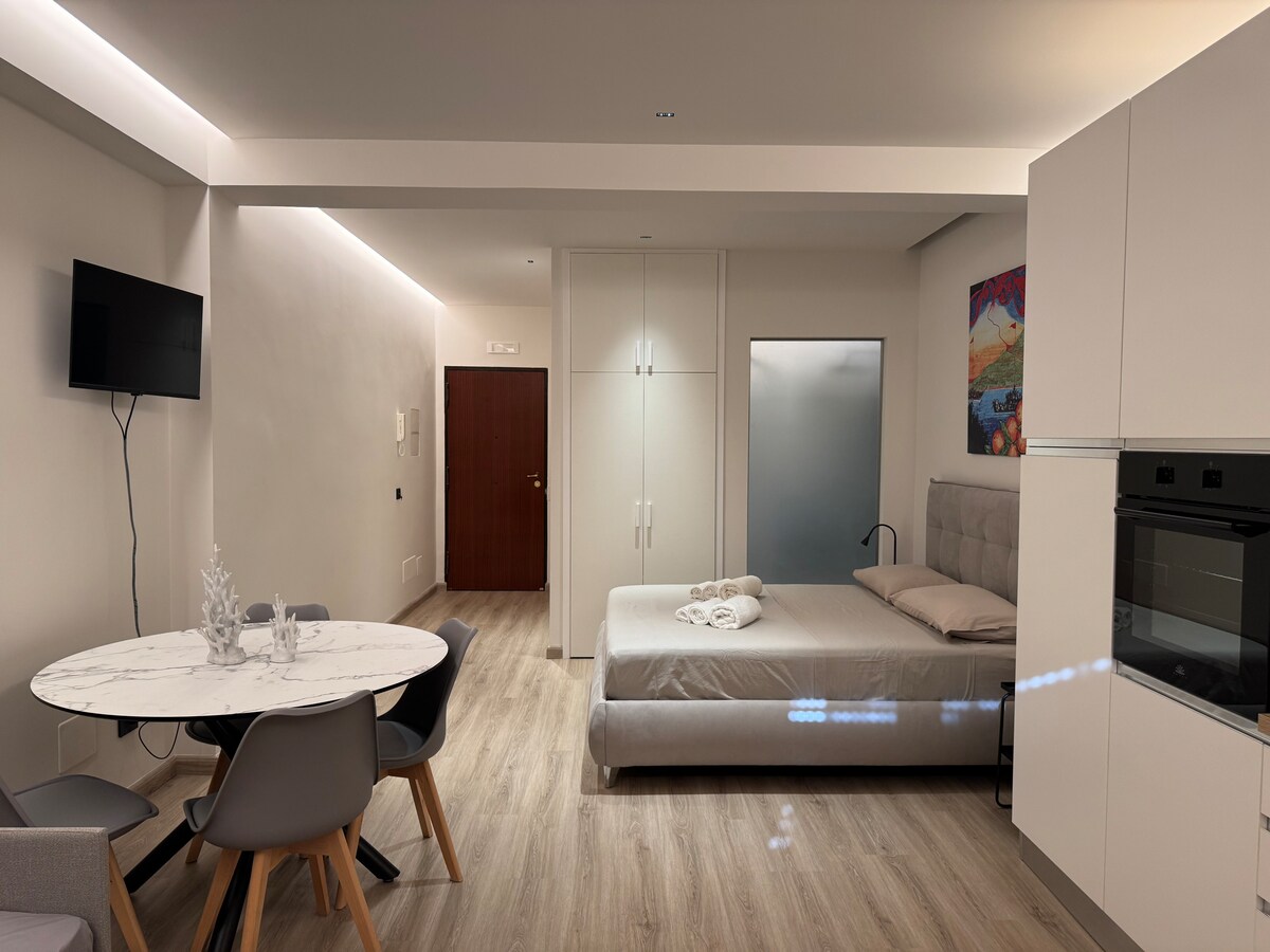 Our delightful apartment is located just 3 minutes walk from the beach and the sea of Giardini Naxos , it is carefully furnished and equipped with all the necessary comforts for your well-being. At home you will find all our warmth and sense of hospitality, as well as our passion as a host. You can arrive both by bus and by car, the parking is in fact always free and free on the street.
