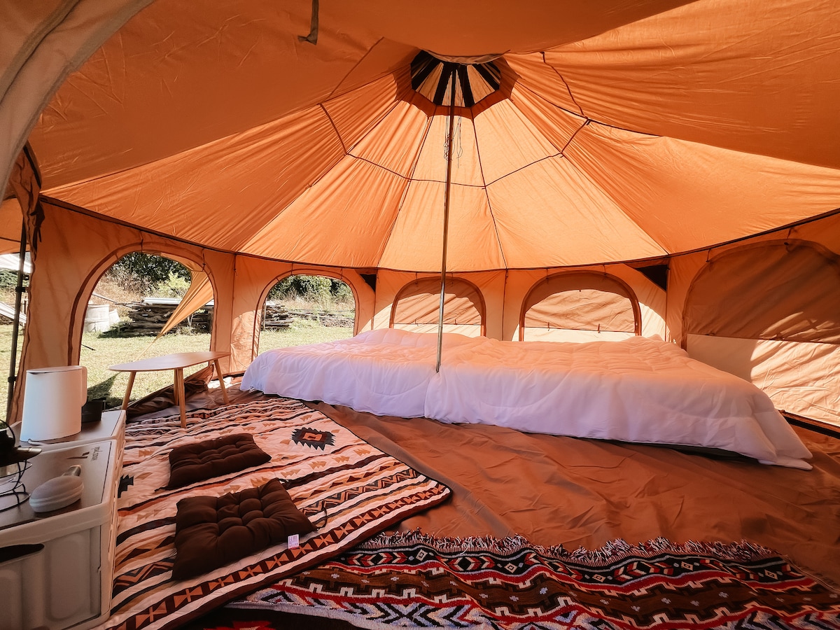 Woody House | Woody House Opušteni prostor za kampovanje pored potoka usred velike doline šatora. Ispred šatora se nalazi kupatilo i svi sadržaji. Postoji prostor za logorsku vatru u kojem se možete opustiti u privatnosti. * Doručak, piće i grickalice dobrodošlice su uključeni u cijenu *
