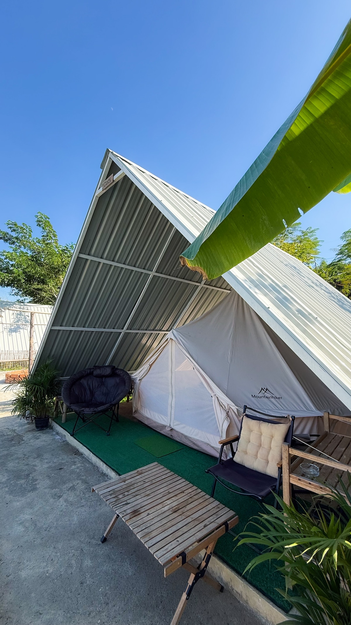 The place is located on the hill top. Stay comfortably in a tent with nature and great view of Doi Chiang Dao and rice field. Great base for your activities in the area. Clean mattress, bedsheet and blanket are provided. Shared toilet and bathroom.