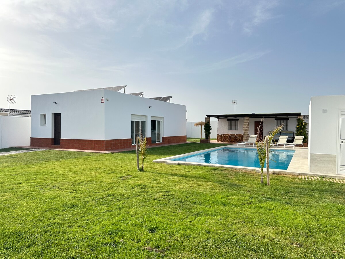 Velika planinska kuća s bazenom dimenzija 8x4m, vrlo velikim vrtom i svjetlovodnim WI-FI MREŽOM. Dva trijema, jedan sprijeda na kojem možete uživati u zalasku sunca, a jedan iza bazena. Nema stepenica, na jednom spratu, idealno za porodice i duže boravke. Nalazi se u vrlo mirnoj ulici bez buke automobila. Sunce, mir i tišina tokom cijele godine. Vrlo prostrana i udobna kuhinja. Posteljina i kućna posteljina. 6 metara automobilom od plaže La Barrosa, Loma de Sancti Petri i Novo golf terena. Bunarska voda.