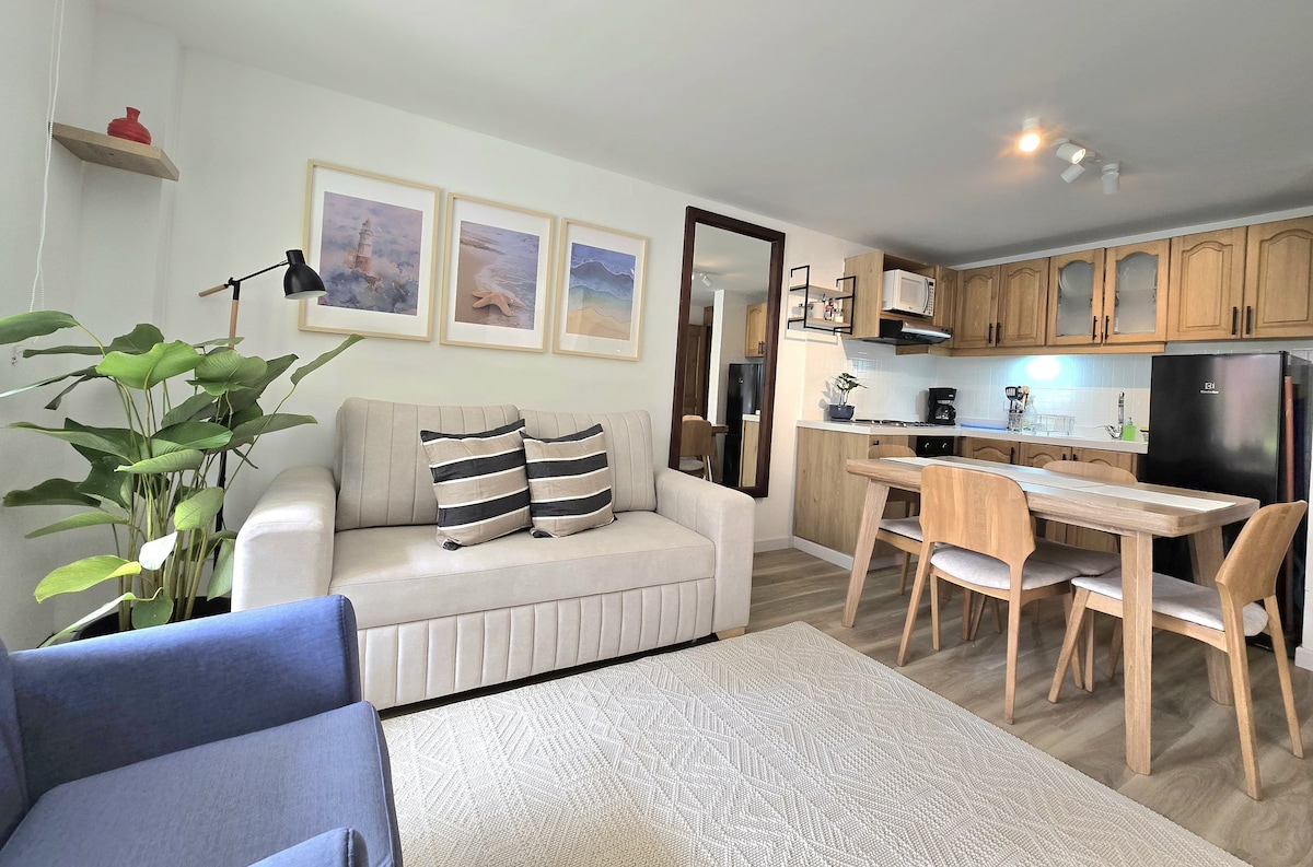 Potpuno novo dizajnersko potkrovlje s pogledom na park u srcu Chicóa, jedne od najekskluzivnijih četvrti u Bogoti, samo nekoliko koraka od Parque 93, vrhunskih restorana i kafića. Okružen živopisnim gradskim životom, ali ispunjen mirom prirode ispred vašeg prozora. Pažljivo uređen sa savremenom umjetnošću, zelenilom i ugodnim detaljima. Uključuje potpuno opremljenu kuhinju, brzi Wi-Fi, pametni TV s streamingom i radni prostor savršen za poslovna putovanja ili razonodu.