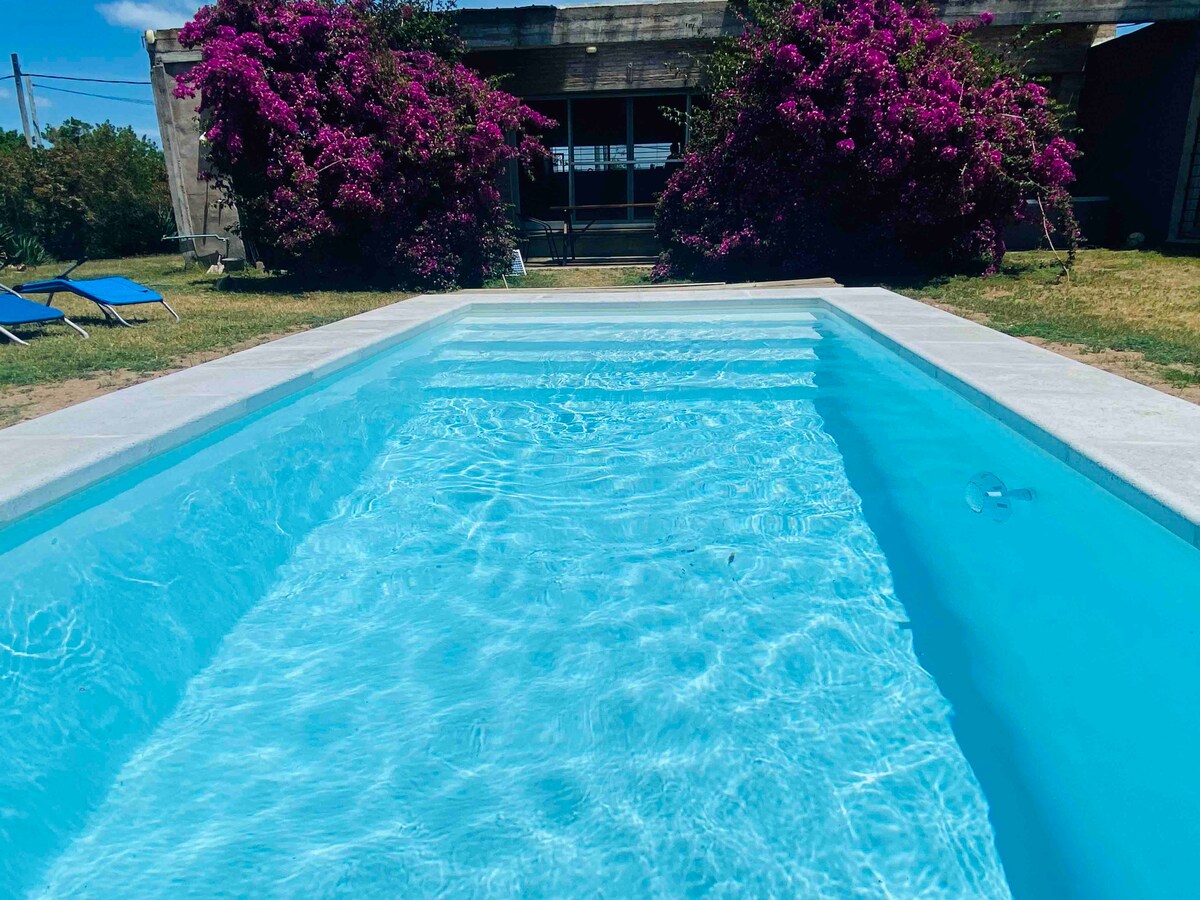 Volterra, hermosa casa donde se conjuga naturaleza, paz y armonia. Amplio fondo con piscina climatizada, jardin y rodeada de pinos, totalmente cercada. A 400 metros aprox de playa naturista Chihuahua, y a minutos de Playas como Tío Tom, Portezuelo, etc. Gran variedad de servicios a minutos (supermercados, farmacias, restaurantes, estación de servicios, cajeros, etc.). Y si a la tranquilidad de tus vacaciones quieres agregarle diversión y espectáculos estarás a 15 kms de Punta del Este!
