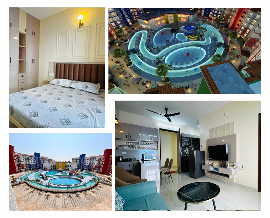 * Dive into our Olympic size pool to refresh your day * want to relax ? Step into the sauna . *health conscious ? We got you - our gym function from 7 to 9 pm *Spacious rooms *Fully furnished kitchen *Free Wi-Fi *24*7 security (CCTV, guards) *Entertainment facilities (Smart TV, society’s clubhouse, garden area) * air conditioning *Attractive interiors *Power back-up *peps queen size bed Note : the map on Airbnb isn’t at right location : Google tata rio de goa .