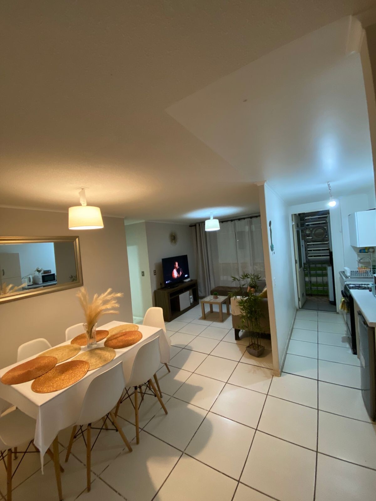 Cómodo departamento en condominio cerrado y seguro, primer piso, a 5 min del centro de Chillán y 45 min de Termas de Chillán. Ideal para 4 personas. Cuenta con 3 habitaciones, 1 baño, cocina equipada, lavadora y secadora. Wi-Fi y Smart TV con múltiples canales de entretenimiento, series, películas, apps y canales nacionales. Espacios comunes ideales para niños. Estacionamiento privado gratuito incluido. Ideal para familias y viajeros.