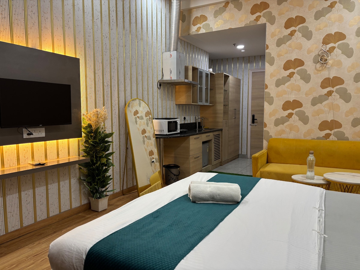 🌆 Luksuzno utočište na visokom spratu s pogledom na grad | Blizu tržnog centra Gaur City Doživite udobnost, privatnost i uzvišen život u ovom predivno uređenom studiju. Idealan za parove, samostalne putnike i poslovne goste, ovaj prostor je pažljivo uređen kako bi pružio miran boravak, a da pritom budete blizu glavnih pogodnosti, poslovnih centara i odredišta životnog stila. Bilo da dolazite zbog posla, kratkog bijega iz grada ili opuštajućeg vikenda, ovaj stan nudi savršenu ravnotežu udobnosti i luksuza