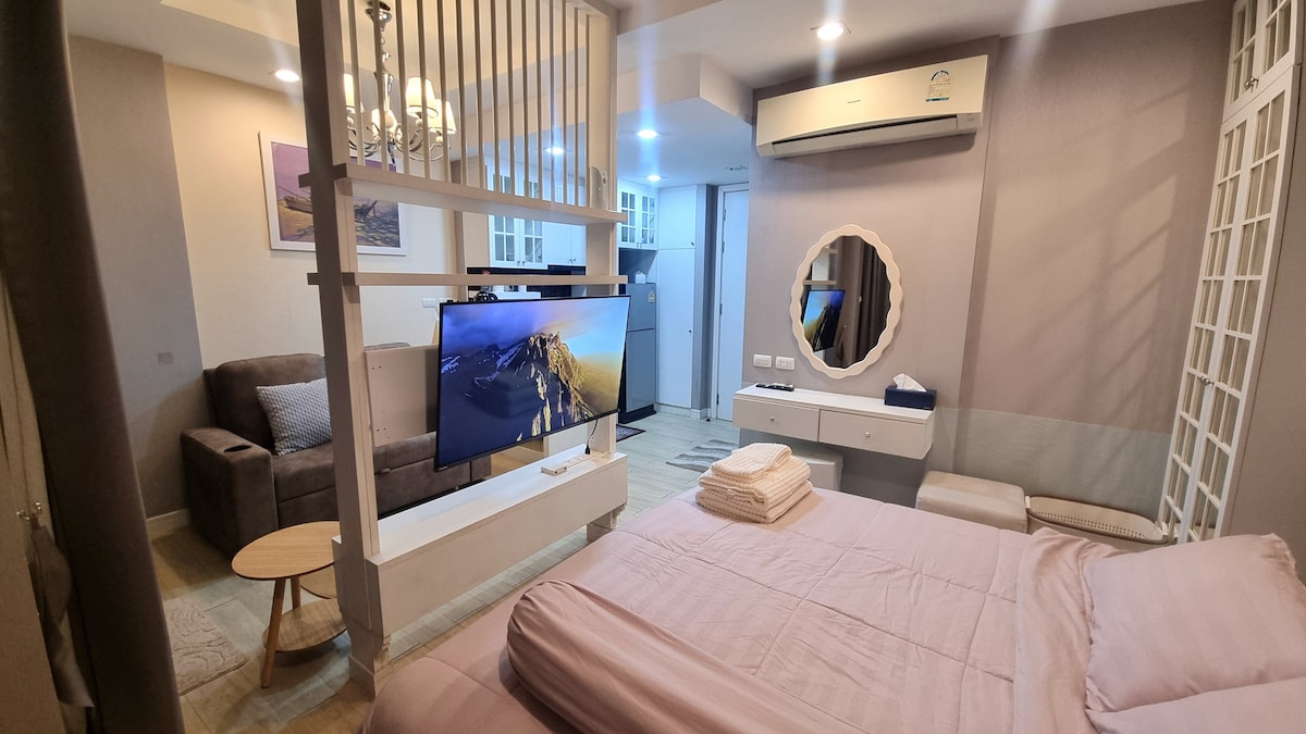 ☆Najekskluzivniji privatni stan u Bangsaenu. ☆Najbolji pogled na plivanje i fitness s pogledom na more na 7. flr. ☆Samo 3 min./200 m. do plaže Wonnapha ☆Kalm i cool zona, ali u blizini plaže i puba/kafića/restorana. Možete se opustiti i promijeniti u režim putovanja u 5 minuta hoda. ☆Mogli biste prošetati i jesti/7-11/plaža/šik kafić/restoran,nema potrebe za automobilom. ♡ Elegantna studio soba u blizini plaže. Pripremamo mekane madrace, mirise, peškire, toaletne potrepštine, posuđe.
