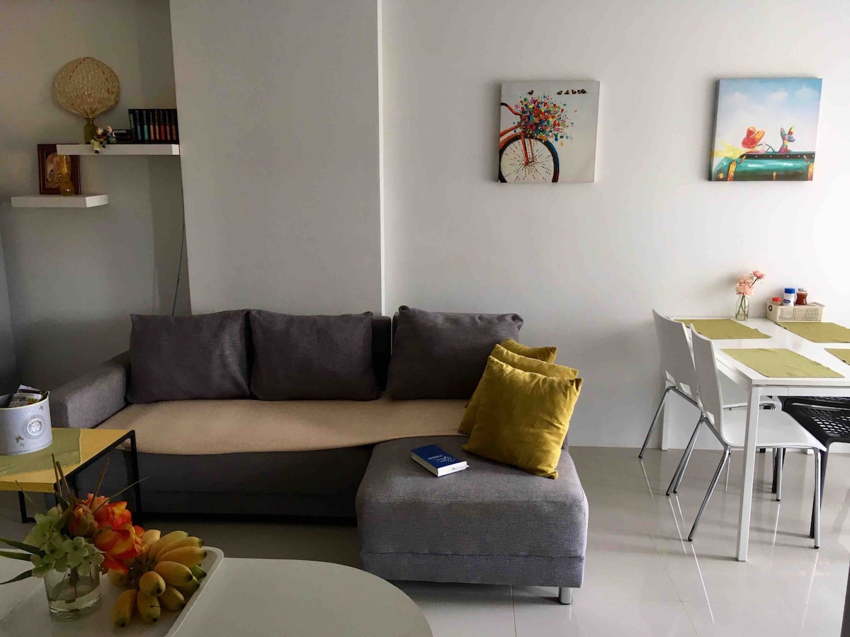 Uživajte u ovom prekrasnom stanu koji se nalazi u Pratumnak Hillu, srcu Pattaye. Njegova strateška lokacija vam omogućava da posjetite bilo koje područje Pattaye u roku od 20 minuta. Jomtien Beach, Pattaya Beach, Walking Street, Central Pattaya... Sve je u blizini. Odvojite vrijeme da se opustite u prekrasnom bazenu ovog kondominija. Naš stan je potpuno opremljen. Uživajte u kuhanju omiljenih jela u kuhinji, brzom Wi-Fi mreži i Smart TV-u s direktnim pristupom Netflixu. Čekamo vas!