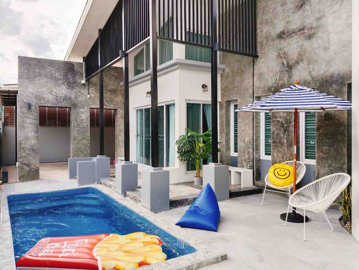 Bazen Villa Ranong Želim preporučiti jednostavnu modernu klasičnu vilu s bazenom. 3 spavaće sobe, 3 kupatila, 1 kuhinja, 1 dnevna soba, 2 parking mjesta unutar kuće. U blizini atrakcija S punim sadržajima Pogodno za porodice, grupe prijatelja ili parove. Turisti koji žele privatnost Ima mnogo toga da se uradi.