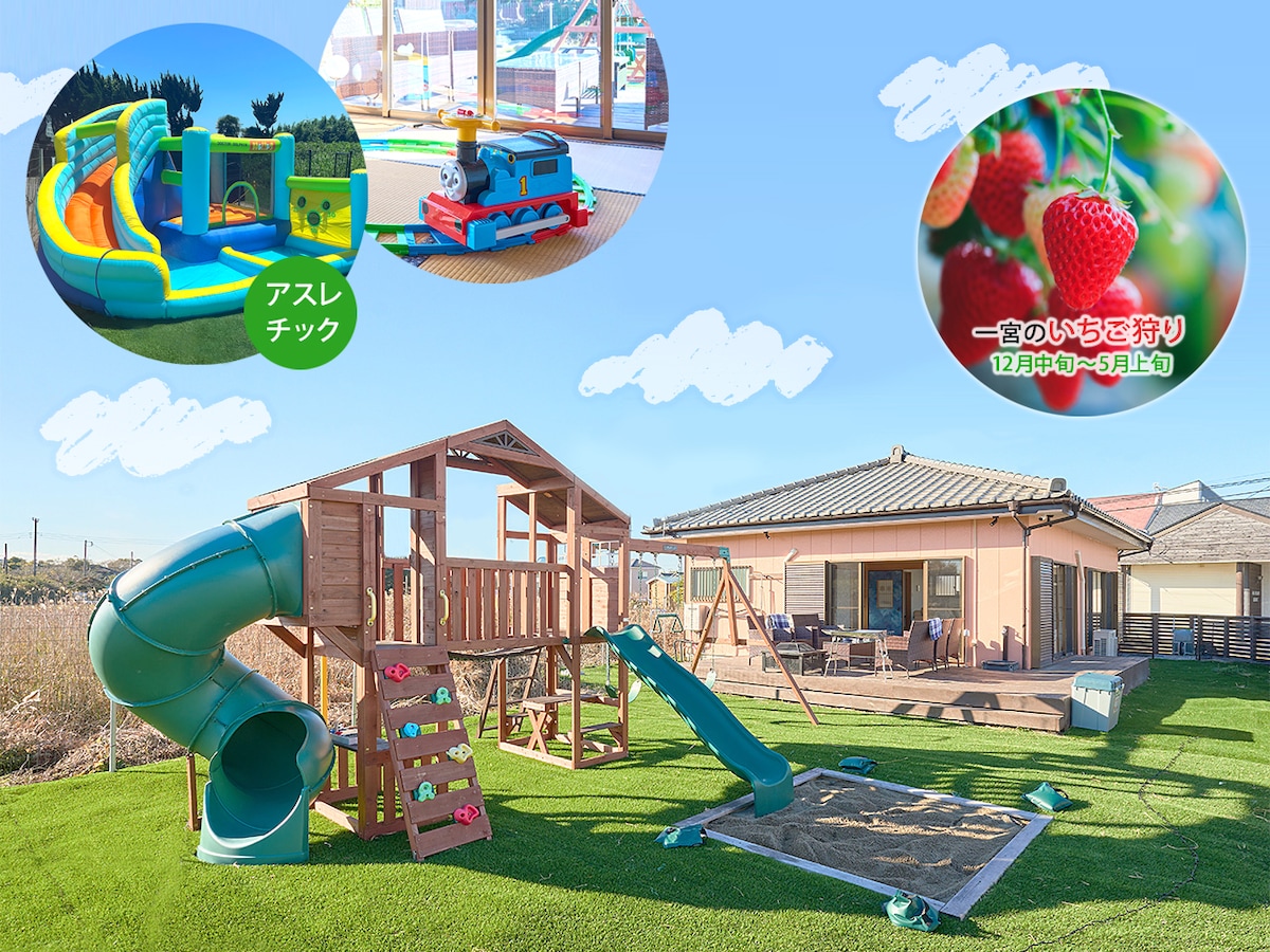 Welcome to KandoStay Kujukuri Park Garden! Kids love the private slide, swing & sandbox (visible from inside). Garden opens 12:00 (Check-in 15:00) Pets Free: Dogs & rabbits welcome! The garden doubles as a private dog run.Includes a spacious BBQ terrace, kids' amenities, and ocean breeze. Located near stylish cafes, beaches, surfing, horse riding, and strawberry picking. A perfect family & pet-friendly getaway!