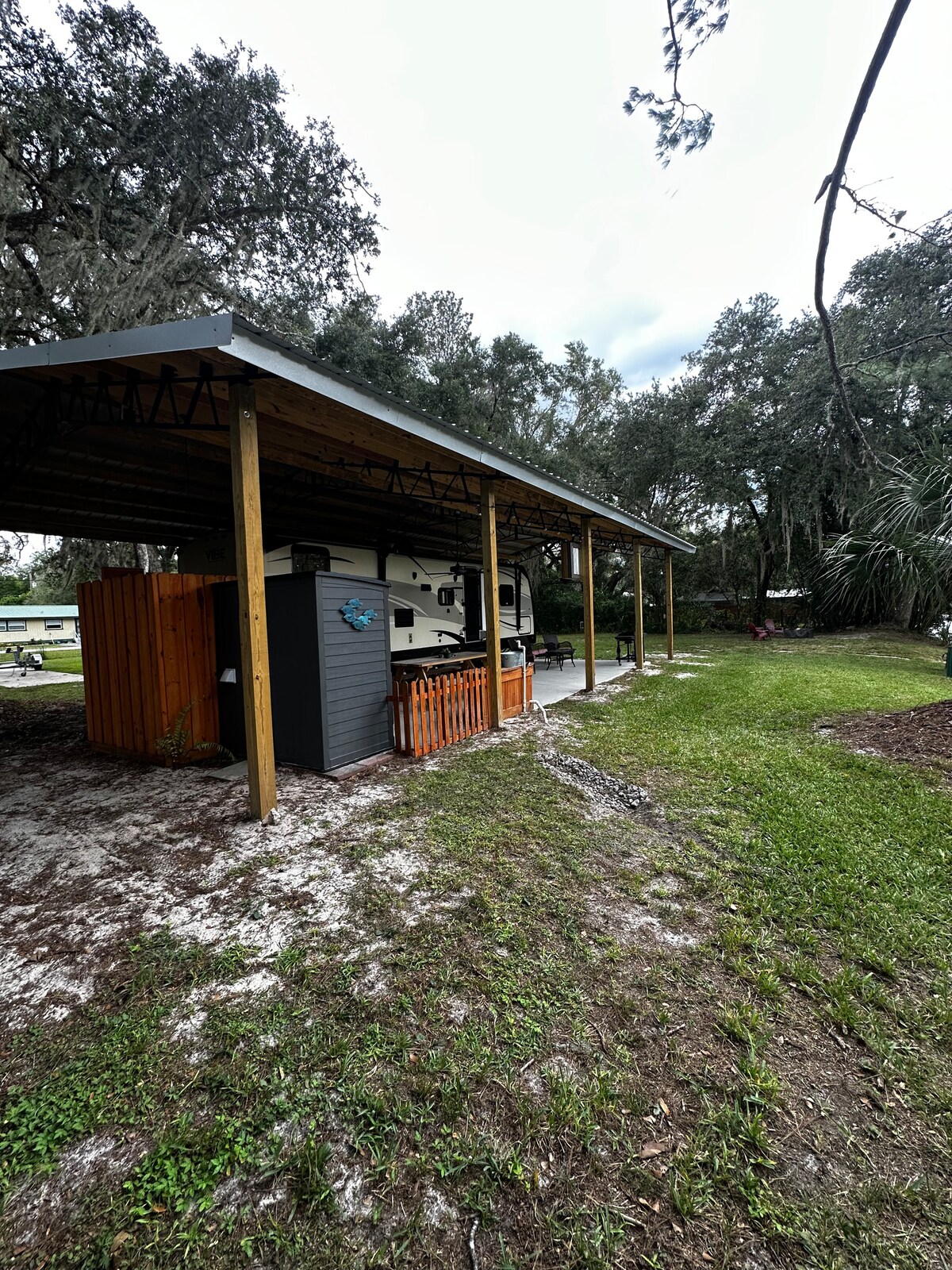 Cozy Stationary Retreat Enjoy all the comforts of home in a unique outdoor setting. This Coach stays permanently parked on a quiet wooded lot only minutes to the beach and world famous springs Zero Stress: No towing or backing up required—just show up and relax. Fully Equipped: Includes a full kitchen, Queen Bed and a private outdoor space with private fire pit, chairs, hammock... Prime Location: Minutes away from Three Sister Springs, Hunter Springs, Fort Island Beach and so much more.