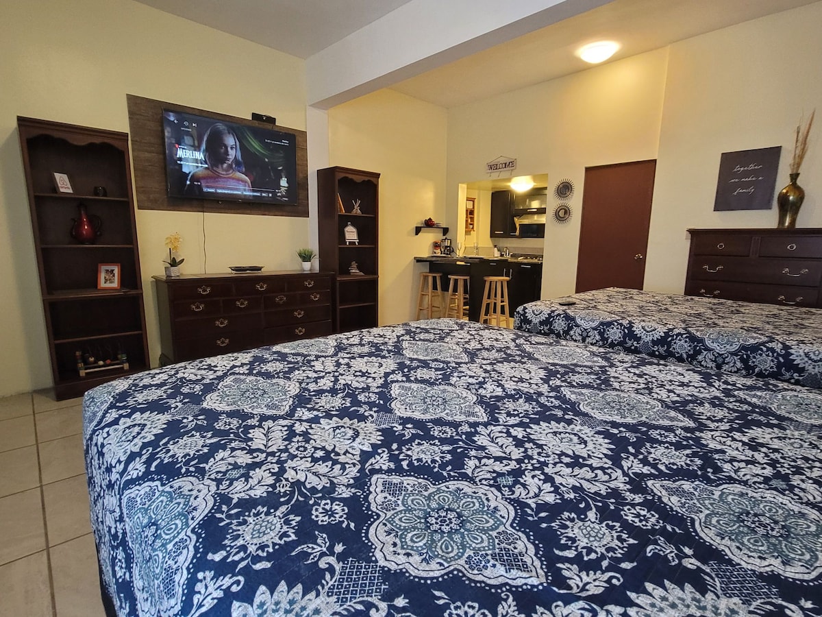 Opustite se u ovom modernom studiju koji se nalazi u mirnom, centralnom dijelu Ciudad Juáreza. Idealan za poslovna putovanja, konzularne sastanke ili kratke odmore, ovaj prostor kombinuje udobnost, stil i stratešku lokaciju. Samo 7 minuta od američkog konzulata. u blizini tržnih centara, poznatih restorana i glavnih avenija u sigurnom i dobro povezanom području.