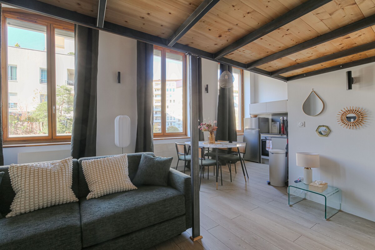 Nekretnina od 30 m2 koja je dobila 3 zvjezdice za pružene usluge. Certifikat Accueil Vélo Na spratu je spavaća soba od 10 m2 s odličnom posteljinom. Kauč na razvlačenje 140 x 190 je izuzetno udoban za još 2 osobe. Dječji krevetić je dostupan. Posteljina, peškiri su obezbijeđeni. Brzina Wi-Fi mreže 90 Mbps , HD TV, NETFLIX PRIME Mašina za pranje i sušenje veša Parking na ulici ili besplatan parking udaljen 50 m Dopuna vozila nije dozvoljena