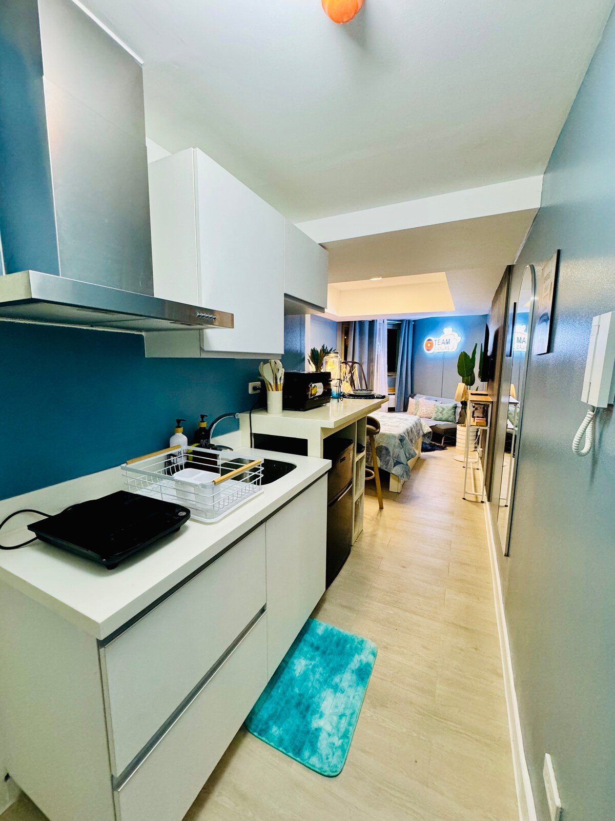 Pronađite savršeno mjesto za odmor u zoni Clark Freeport! Naš prostrani studio od 40 m2, prikladan za kućne ljubimce, je mirno utočište. Smješten u mirnom, niskom kondominiju s izrazitim korejskim ugođajem, nalazi se na samo nekoliko koraka od hotela Hilton. Udobno spava 4 osobe s bračnim krevetom i kaučem na razvlačenje. Uživajte u praktičnosti potpuno opremljene kuhinje, mašini za pranje veša u smještajnoj jedinici i osnovnim potrepštinama za boravak bez muke. Nalazite se na nekoliko minuta od avanture: istražite bujni Clark Parade Grounds ili se zabavite u Aqua Planetu!