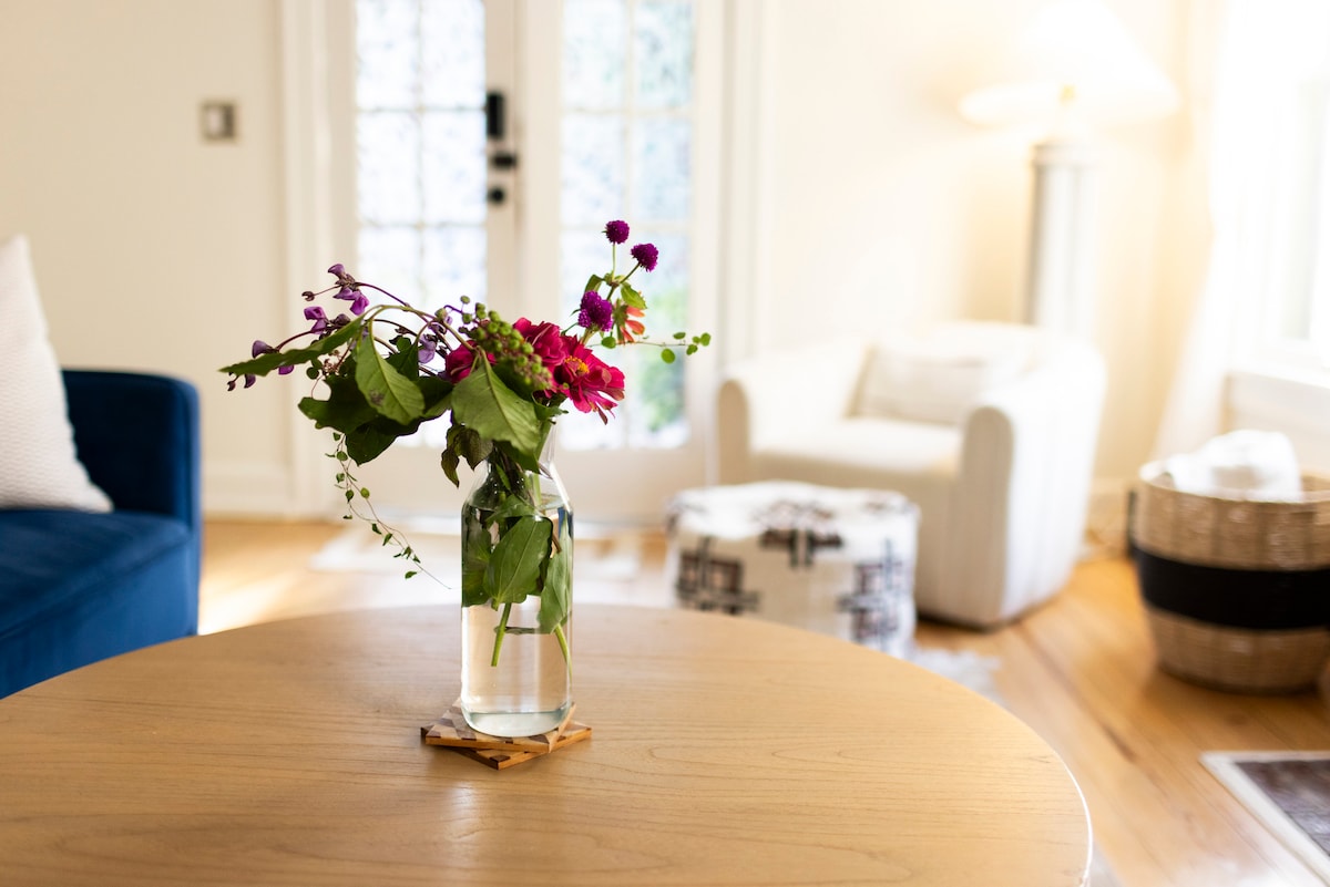 Doživite najbolje od Kansas Cityja u bungalovu ovog živopisnog umjetnika u kulturno raznolikoj historijskoj četvrti. Centralna lokacija i udaljenost od centra grada, umjetničke četvrti Crossroads, River Marketa, Power & Lighta, North KC-a, West Bottomsa i stadiona Arrowhead. Ispunjeno starinskim šarmom, šarenim tekstilom i globalnim dekorom. Uživajte u bujnom dvorištu s bačvom sa saunom, sezonskim bazenom, hladnim bazenom i ognjištem. Završite večer koktelima u salonu Lucky Kitty Tiki.