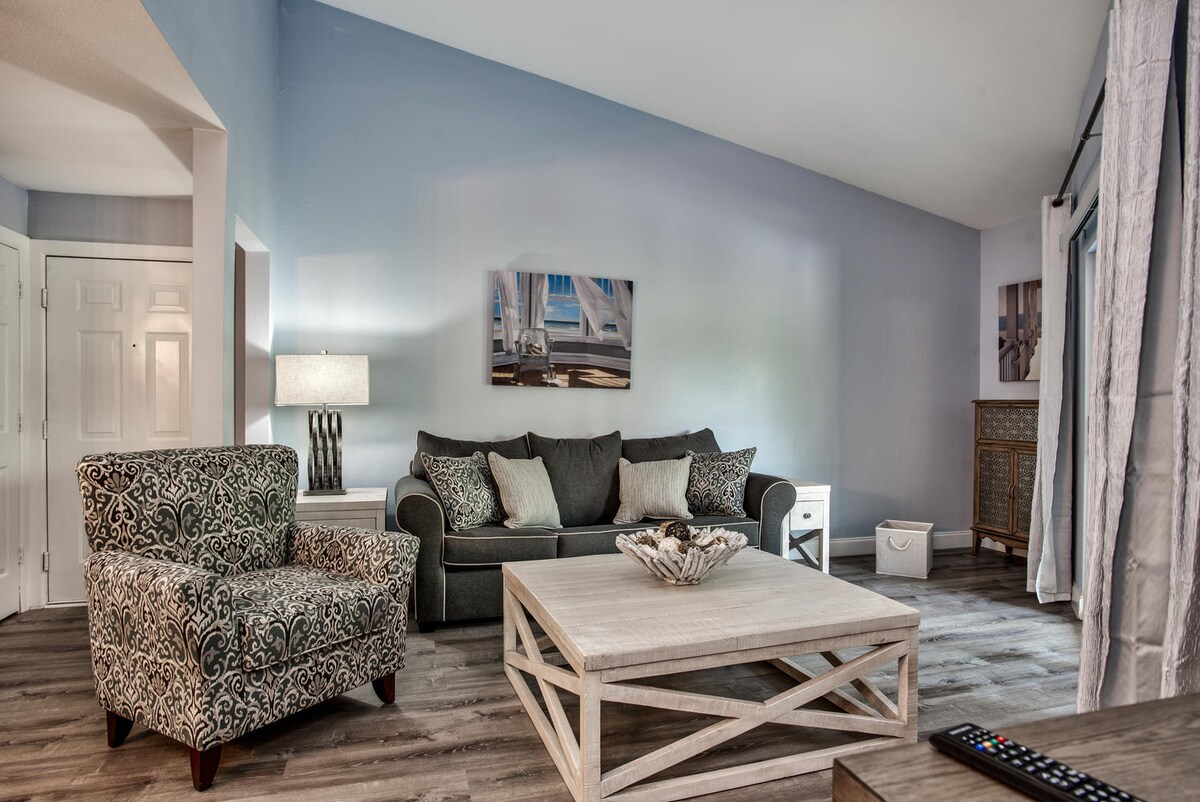 AŽURIRANO moderan svijetao i šareni stan s BESPLATNIM GRIJANIM BAZENOM! Prvi sprat, bez stepenica. 3 km od plaže. Crazy FAST WIFI- at 600mbps !!! Odlična centralna lokacija u blizini 2 tržna centra, restorana, parkova i mnogih lokalnih plaža na obali zaliva. SIGURNA OGRADA, tiha zajednica ima grijani bazen, teretanu, teniske terene i plinske roštilje za vaše uživanje. Samo ponesite peškir za plažu i kupaći kostim i OPUSTITE SE! Pješačka udaljenost do toliko trgovina/restorana i staze Pinellas!