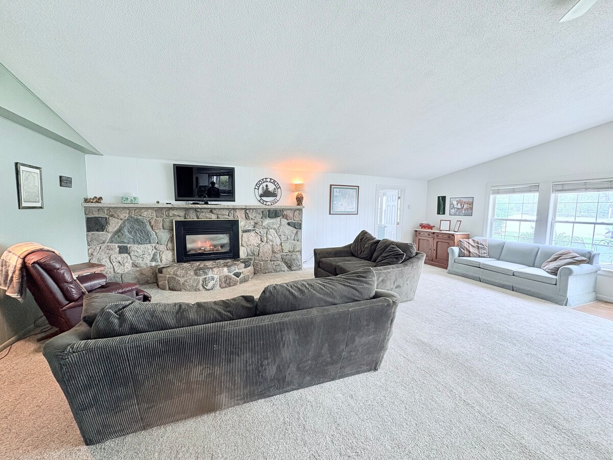 Dobro došli u kuću u obliku slova A u Finch Creeku, jedinstveno utočište u sjevernom Michiganu s pogledom na Finch Creek i potpuno okruženo prirodnim područjem rijeke Grass. Renovirali smo ovu brvnaru iz 1970-ih od temelja i dizajnirali je tako da djeluje otvoreno i povezano s krajolikom. Sa 6 metara visokim zasvođenim stropovima, masivnim prozorima, kaminom pored kojeg se možete sklupčati i udaljeno samo nekoliko minuta od nekih od najljepših jezera u državi, savršeno je mjesto za istraživanje ili uživanje u ničemu.