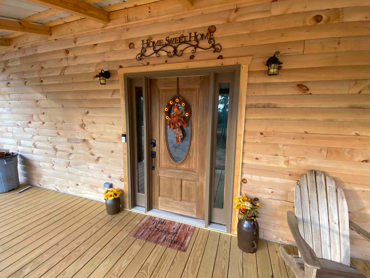 Potpuno novo, 10 minuta do ulaza u šumu Talladega i 30 minuta od trka u Talladegi. Mirna i udobna brvnara smještena na seoskoj farmi, ali samo 2 milje od I-20 za lak pristup. Nalazi se između Atlante i B-hama. Savršeno za par, porodicu ili prijatelje. Nevjerovatna veranda oko kuće za sjedenje i gledanje izlaska ili zalaska sunca i uživanje u pogledu na planine. Uživajte u livadama suncokreta u određeno doba godine!