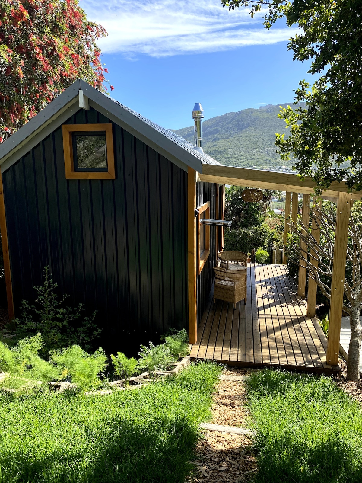 Stay at Cyphia Close Cabins in Hout Bay, in a unique, micro wooden cabin with magnificent outdoor spaces, sea & mountain views, surrounded by beaches & sanddunes while still close to town/CBD Features a queen sized bed, en suite bathroom, kitchen, work-from-home, deck & open firepit. Off street parking Internet: upto 500MB down/200M up. Loadshedding backup Not secluded; we have other cabins & animals onsite Really small & no space for large luggage. Good for a few nights and limited cooking