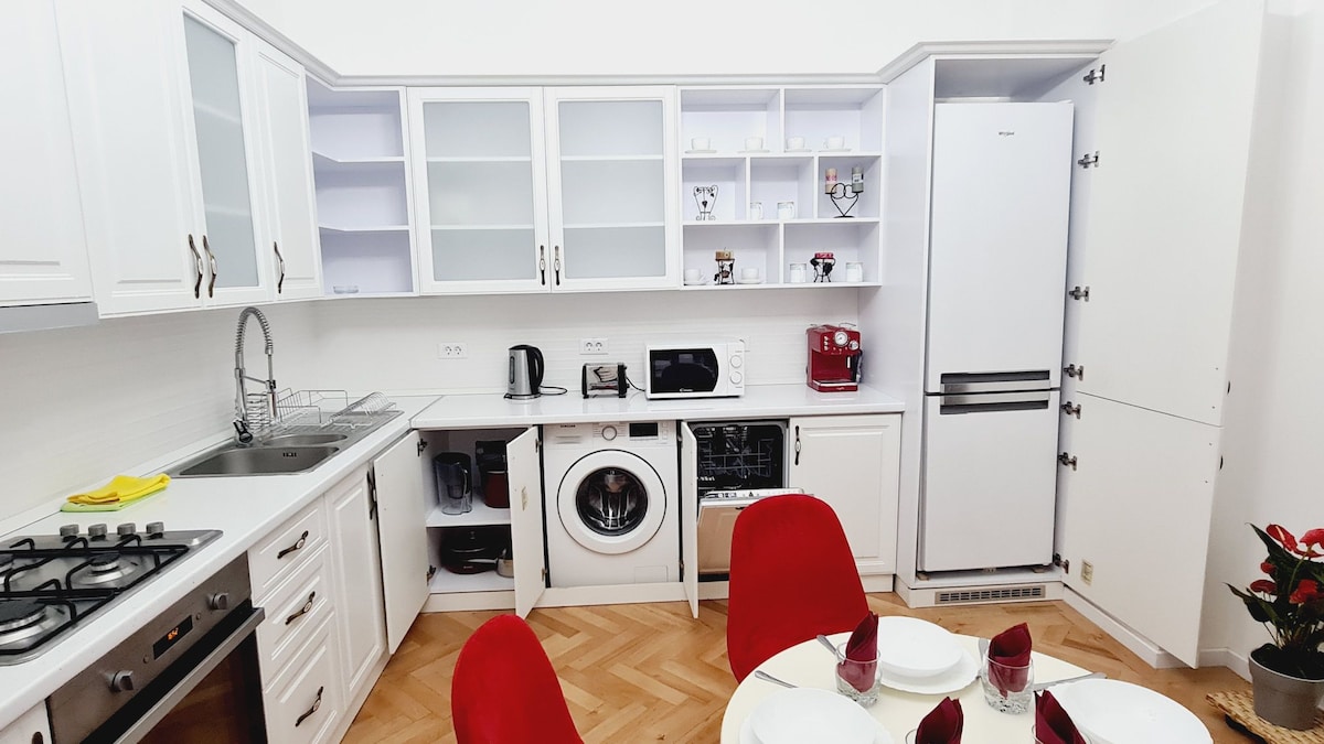 -moderna rezidencija na popularnoj lokaciji - ulica Pann 12 - Tihi i luksuzni stan s dozvolom -izvodno čist, tihi, zajednički prostori, kamin i velika kada za namakanje -2 velike nezavisne spavaće sobe za 2 para, jedan zajednički prostor - nalazi se u novoj zgradi u blizini trga Mihai Viteazu. - pješačka udaljenost od gotovo svih glavnih atrakcija u Cluju, uključujući trg Unirii i trg Muzeului. - besplatan podzemni parking - besplatan Neflix - hi speed Wi-Fi - amortium sadržaji
