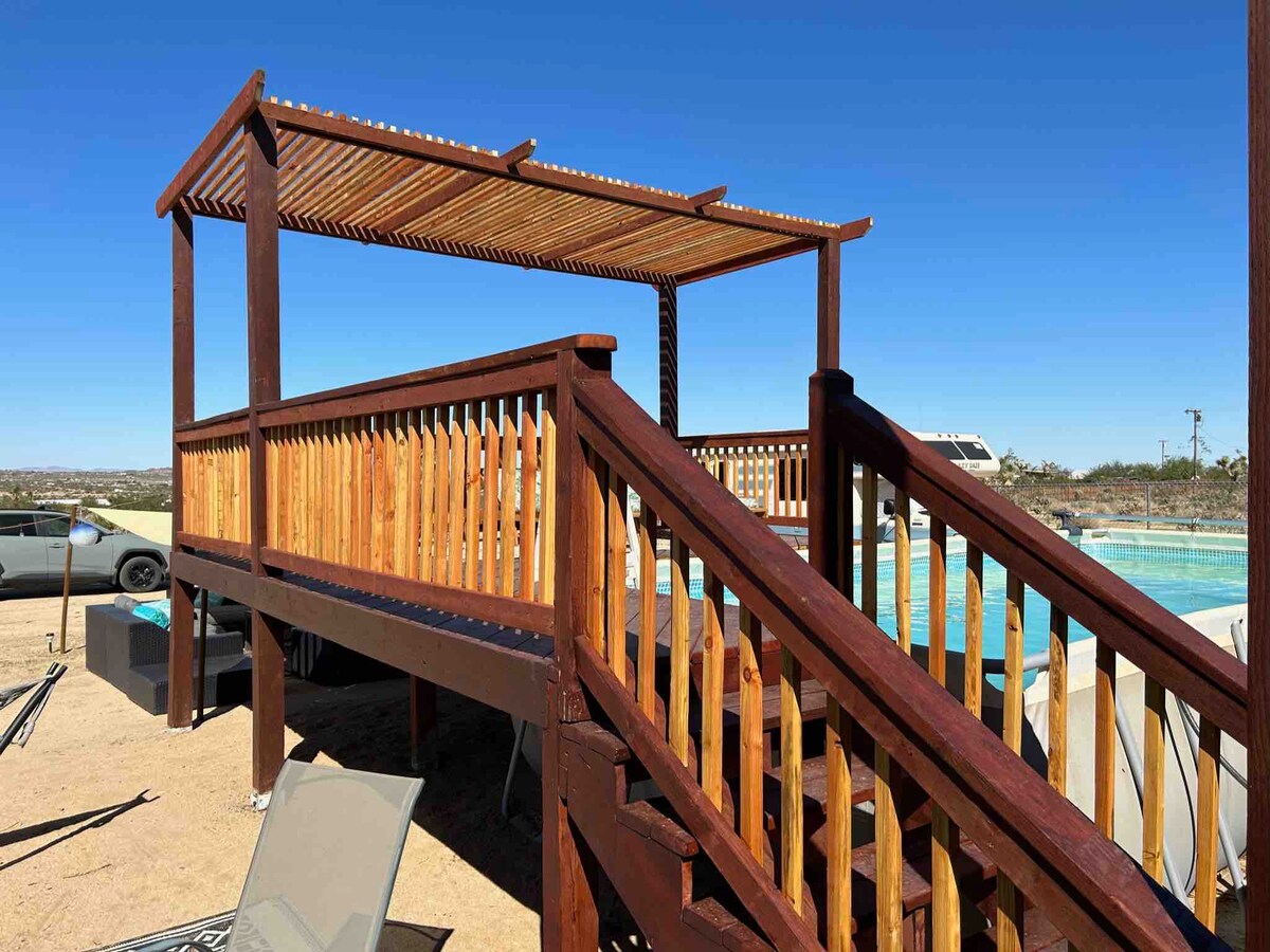 Pobjegnite u mirnu ljepotu Joshua Treea u četvrti Golden Hour Oasis Annex, prostranoj vili od 1,5 hektara s bazenom, masažnom kadom i zadivljujućim pustinjskim vrtom. Odlična lokacija objekta, samo 3 km od ulaza u Nacionalni park Joshua Tree, pruža jednostavan pristup svim glavnim atrakcijama ovog područja. Golden Hour Oasis je savršen odmor za opuštanje, promatranje zvijezda, hvatanje izlaska sunca ili uživanje u ljepoti zalaska sunca u zlatnom satu.