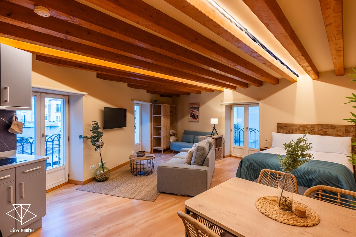 „PREDIVAN POGLED NA KATEDRALU” je fenomenalan. S vašeg BALKONA možete uživati u jedinstvenom pogledu. Sa izuzetnim dekorom, kombinuje udobnost i dizajn u LUKSUZNOM smještaju, POTPUNO NOVOM. U srcu Burgosa i u mirnom području, CAMINO DE SANTIAGO. Katedrala, zahvaljujući velikom ogledalu, prodire u dnevnu sobu opremljenu SMART TV-om i udobnim kaučem na razvlačenje. Čajna kuhinja je potpuno opremljena. Spavaća soba, sa krevetom od 150, ima pametni TV i veliki ormar sa ogledalom.