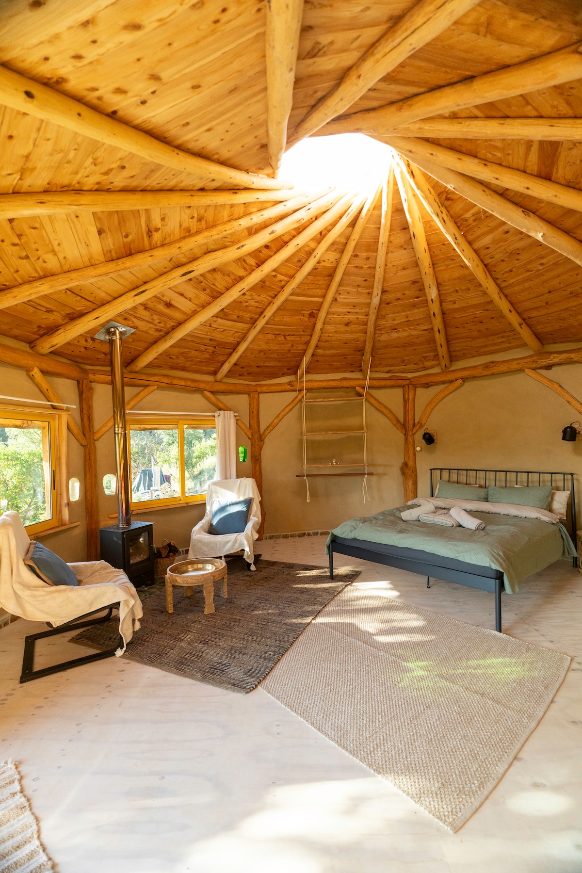 Posjetite 'Casa Matilde', našu prekrasnu jurtu smještenu u okruženju prikladnom za porodice na terasastom bivšem vinogradu iznad zadivljujuće rijeke Zezere. Doživite život van mreže uz udobnost modernog života zahvaljujući solarnoj tehnologiji. Uređen marokanskom temom, ovaj lagani i prozračni prostor je također vrlo udoban i romantičan. Uživajte u pogledu na rijeku s terase/prostora za jogu ili u krevetu. Jurta se nalazi u vlastitom privatnom vrtu na terasi okruženoj impresivnim zidovima od kamena i vinovom lozom.