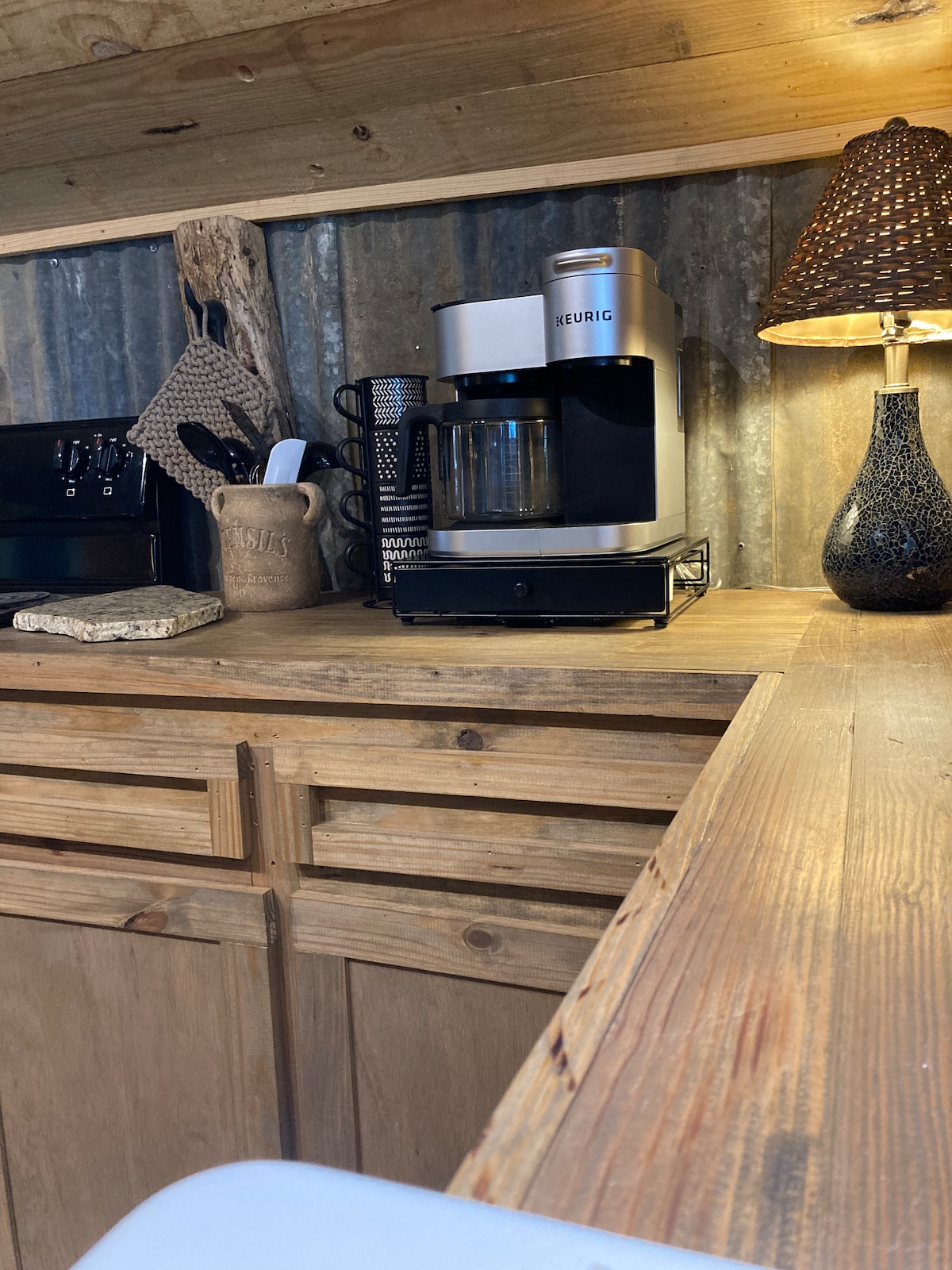 The simplicity & relaxation of our premium 399 Sq. Ft. tiny home is so refreshing and unique. This home sleeps four. It has a Queen size bed and a luxury pullout Queen sofa. The fully equipped kitchen is perfect to fix up your gourmet meals. The Bluebonnet is nestled beside our glistening 1/2 acre pond with ducks, fish and a fountain. A wooded area behind and open fields out front brings a nice breeze across the porch. Makes for a perfect place to enjoy the Big Texas Sky!