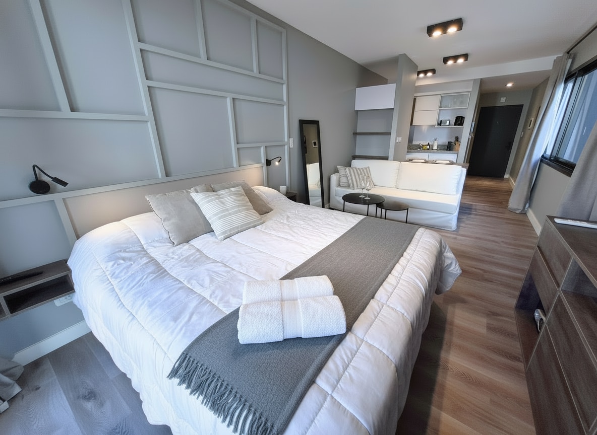 Experience a perfect stay in this luxurious apartment in the heart of Belgrano. This exclusive accommodation offers 5-star hotel amenities, including a full kitchen, modern bathroom, spacious bed, and 24-hour security. From the moment you step inside, you'll be envolved by the elegance of a new, carefully designed space with high-end details. The building also features amenities of a first-class experience with style and sophistication.