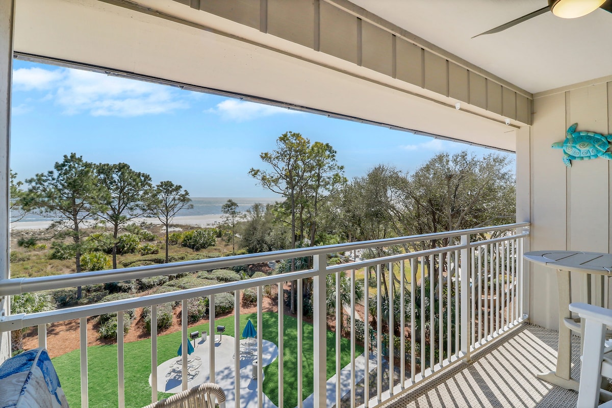 ☀️Time to BOOK YOUR HILTON HEAD ESCAPE. Wake up to sweeping oceanfront views from this top-floor Breakers villa, where sunrise steals the show. Watch dolphins & sip morning coffee on your private balcony, then walk just steps to the beach, pool, restaurants, and shopping at Coligny Plaza—no car required. Perfect for a romantic getaway or small family vacation, with exclusive deals on bikes & dolphin tours. This bright condo offers unbeatable location, privacy, and a stress-free island stay. 🐬🚲