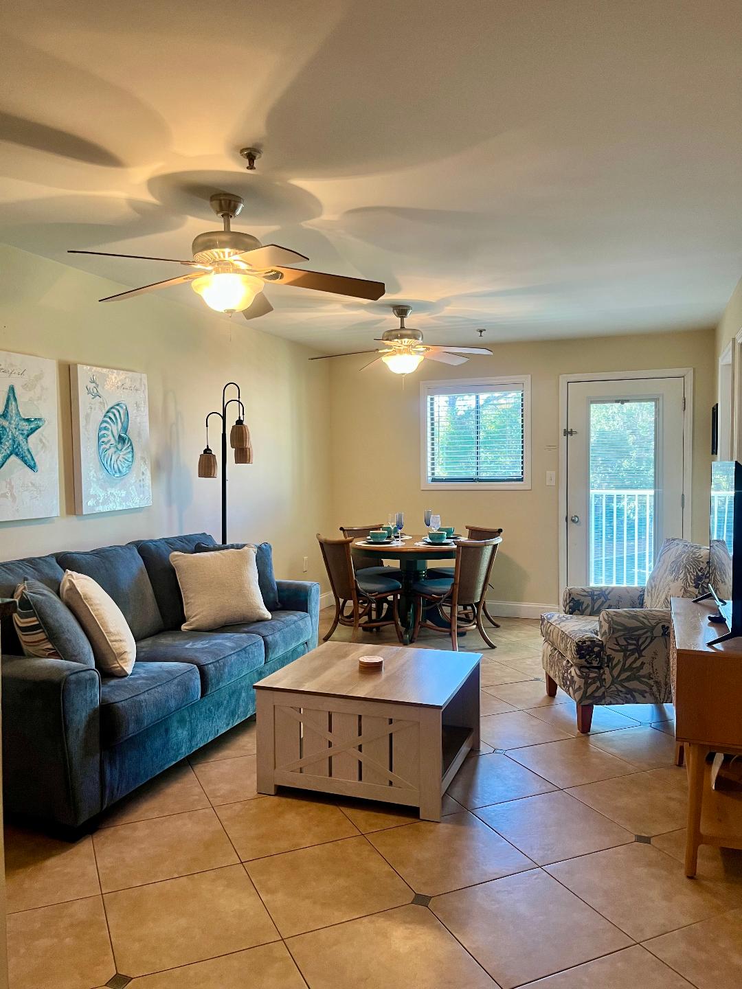 Kondominij s 2 kreveta/2 kupatila uključuje potpuno opremljenu kuhinju sa S.S. uređajima, trpezariju, tvrdo drvo i balkon s pogledom na teniske terene sa 6 litara. Odmaralište također ima prodavnicu delikatesa i suvenira, 2 vanjska bazena, 1 godinu unutar grijanog bazena (odlično za zimu), stazu za trčanje, fitnes, masažnu kadu, saunu, liftove, golf u blizini i objekte za pranje veša. Plaža je udaljena više od 7 minuta hoda ili tokom radnog vremena idite shuttleom. Na plaži možete svratiti u Coco's na ručak i hladna pića.