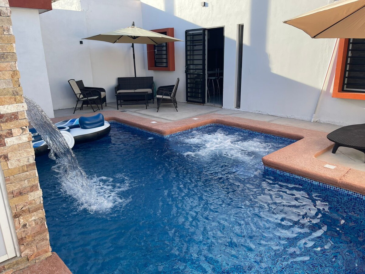 Cijela kuća, dvije ulice od plaže, opremljena kuhinja, trpezarija, dnevni boravak, 2 spavaće sobe se nalaze na gornjem spratu, glavna spavaća soba s privatnim kupatilom i bračnim krevetom, dnevni boravak, 2 kupatila u zajedničkim prostorijama, terasa i garaža za 1 automobil. U okruženju kuće možete pronaći sve, od japanskog restorana do bazena za doručak, neke ukusne chilaquiles, supermarket je udaljen nekoliko koraka od kuće, javni prevoz prolazi na uglu i taksi udaljen dvije ulice.