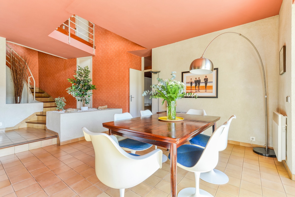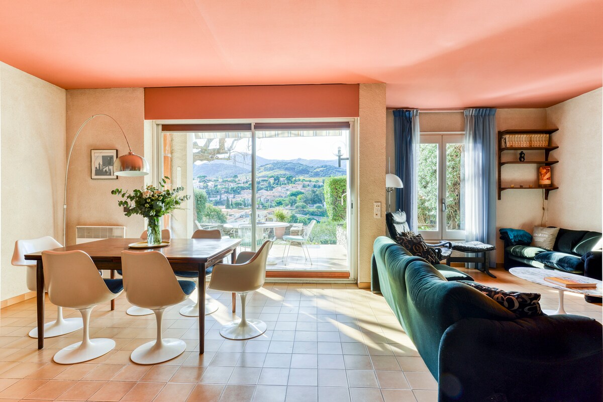 Prekrasno uređena dizajnerska kuća, u mirnom i očuvanom okruženju, 10 minuta hoda od centra Collioure, s privatnim parkingom za 3 vozila. Udobni sadržaji sa dnevnim prostorima s pogledom na vrtove i terase, otvorenim pogledom, vanjskim prostorom za objedovanje s roštiljem. Za nezaboravan boravak u Collioureu, „gradu slikara”, s porodicom ili prijateljima, na mediteranskoj obali, između mora i planina, u blizini Španije.