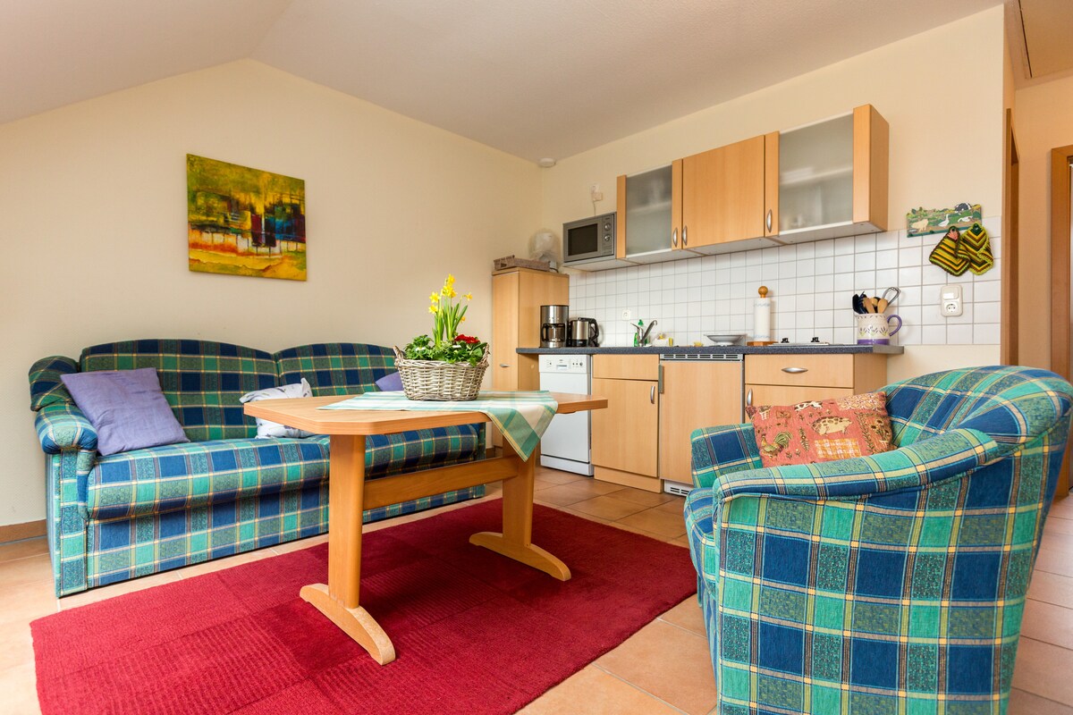 Stan od 50 kvadratnih metara za povlačenje na posao, za gledanje u vrt, za stvaranje aktivnog odmora, za posmatranje sajamskih datuma, boravak za jednu ili više noći, sa ili bez doručka, sam ili sa porodicom, posjete rodbini, otkrivanje prekrasnog regiona Sedam planina i Svjetske baštine Kulturni pejzaž Gornje doline Srednje Rajne, istraživanje gradova Kelna i Bona, posjeta Petersbergu - sve je to moguće ...