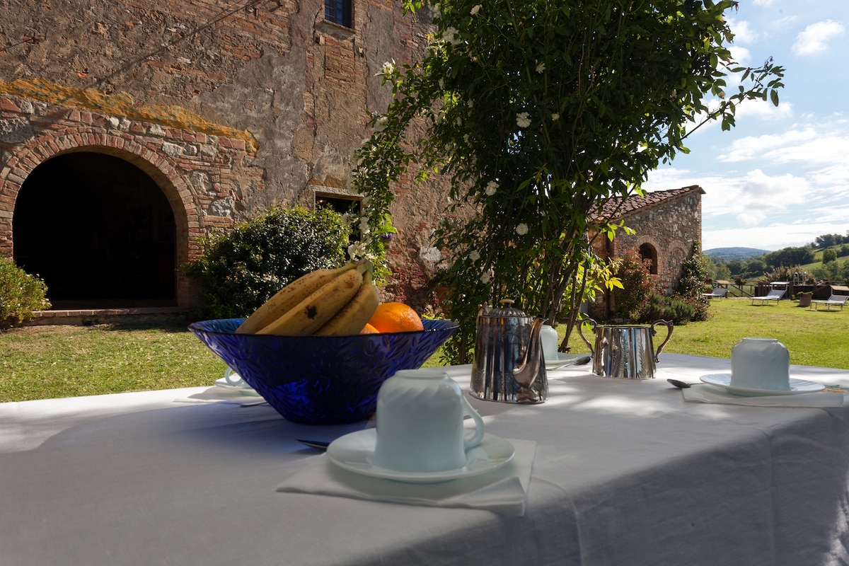 IMAJTE NA UMU DA JE BORAVAK NA SELU S NEKOLIKO JAVNIH PREVOZA OSIM TAKSIJA NAJBOLJI NAČIN DA UŽIVATE U BORAVKU I POSJETITE PREKRASNO OKRUŽENJE JE DA IMATE AUTOMOBIL. Vila di Geggiano iz 18. vijeka, okružena vinogradima i s ljubavlju održavanim vrtovima, nalazi se u području Chianti u blizini Siene, jedne od najljepših regija Italije koja će pružiti idiličnu i očaravajuću pozadinu vašem odmoru. Naša gostinjska kuća nalazi se u jednom od vrtnih paviljona vile.