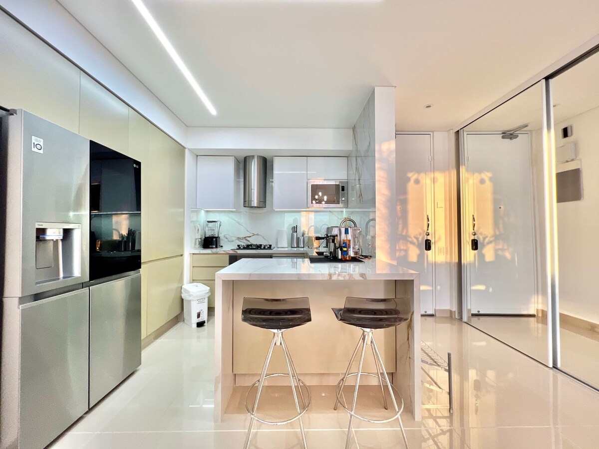 Savršeno mjesto da doživite luksuz i mir u Cartageni. Naš apartman nudi jedinstvenu otmjenu atmosferu s pogledom na veličanstveni Karipski okean uz plažu. Naša jedinica je dizajnirana za goste koji žele uživati u savršenoj kombinaciji zena i High Living atmosfere. Poslušajte pljusak talasa kada se probudite i kada ste spremni za dubok san. Ova moderna zgrada također ima vrhunske umjetničke sadržaje kao što su teretana, jacuzzi i popularni preljevni bazen s pogledom koji oduzima dah