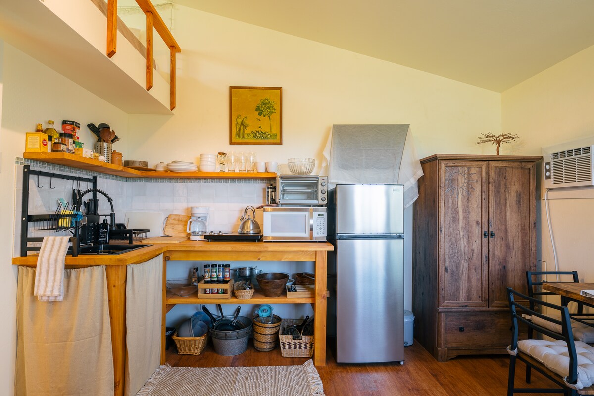Dobro došli u Loft 1, vaše privatno utočište u Sedoni! Ovaj prostrani potkrovlje od 890 kvadratnih stopa je veće od bilo koje hotelske sobe u gradu i dizajnirano je za potpunu udobnost. Zasvođeni stropovi i veliki prozori ispunjavaju prostor prirodnim svjetlom, otvarajući se na prekrasan pogled i vaš privatni balkon. Uživajte u mirnoj lokaciji pogodnoj za šetnju u blizini restorana, trgovina, namirnica i pozorišta, uz brz pristup najboljim pješačkim stazama u Sedoni.