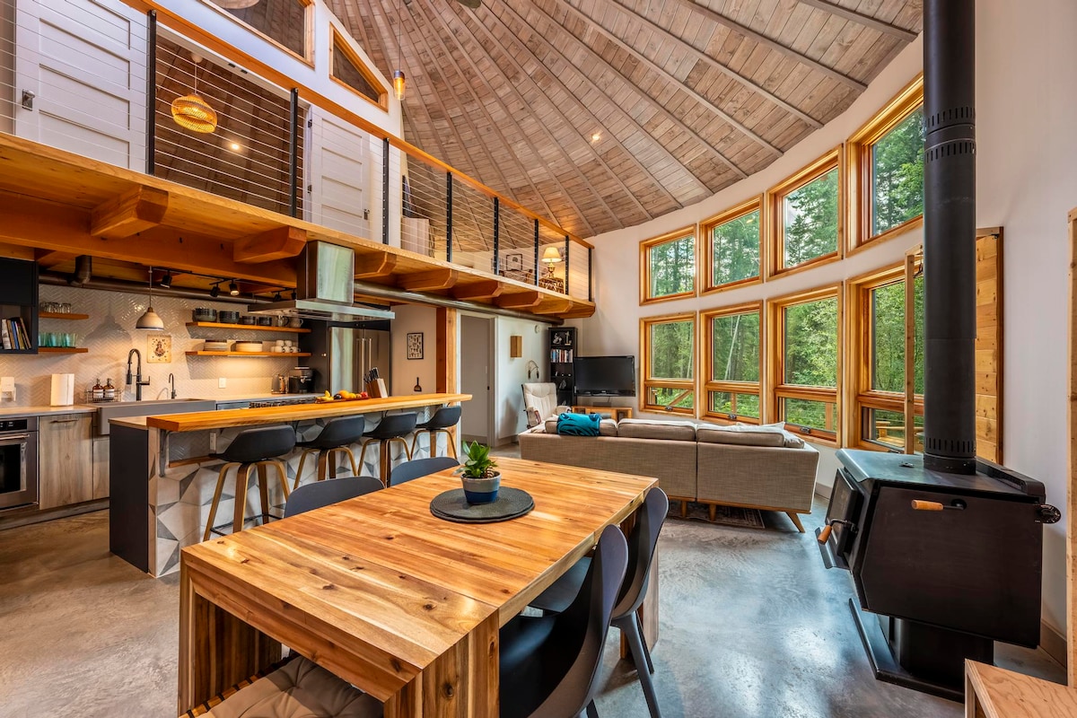 Ova svijetla jednosobna brvnara ima rustikalni šarm smješten u šumovitom području, nedaleko od grada Golden, prije Krista. Kao najmanja od svih koliba od divlje šume, raspored Deer Crossinga je udoban i kompaktan, savršen za dva gosta. Na katu se nalazi spavaća soba otvorenog koncepta s bračnim krevetom i kupaonicom. U prizemlju se nalazi kuhinja i dnevni boravak koji dijele jedan otvoreni prostor. Za dodatnog gosta uključen je kauč na izvlačenje. Dvije natkrivene palube također omogućuju ugodnije vrijeme na otvorenom.