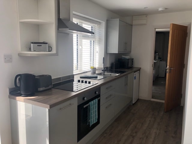 Prekrasan, prostran, na prvom spratu u lokalnom vlasništvu, jednosoban stan s prozorima od poda do plafona s pogledom na plažu, granica Hastingsa i St. Leonarda. Pješice do barova, restorana i trgovina starog grada Hastingsa, centra grada i St. Leonarda. Za 2 osobe s bračnim krevetom (širine 180-179 cm); s kadom na razvlačenje, tuš kabinom i potpuno opremljenom kuhinjom, TV-om i brzim Wi-Fi mrežom. U blizini je besplatan parking. Opsežne preporuke za lokalne firme koje podstičemo goste da koriste. Peškiri i posteljina su obezbijeđeni.