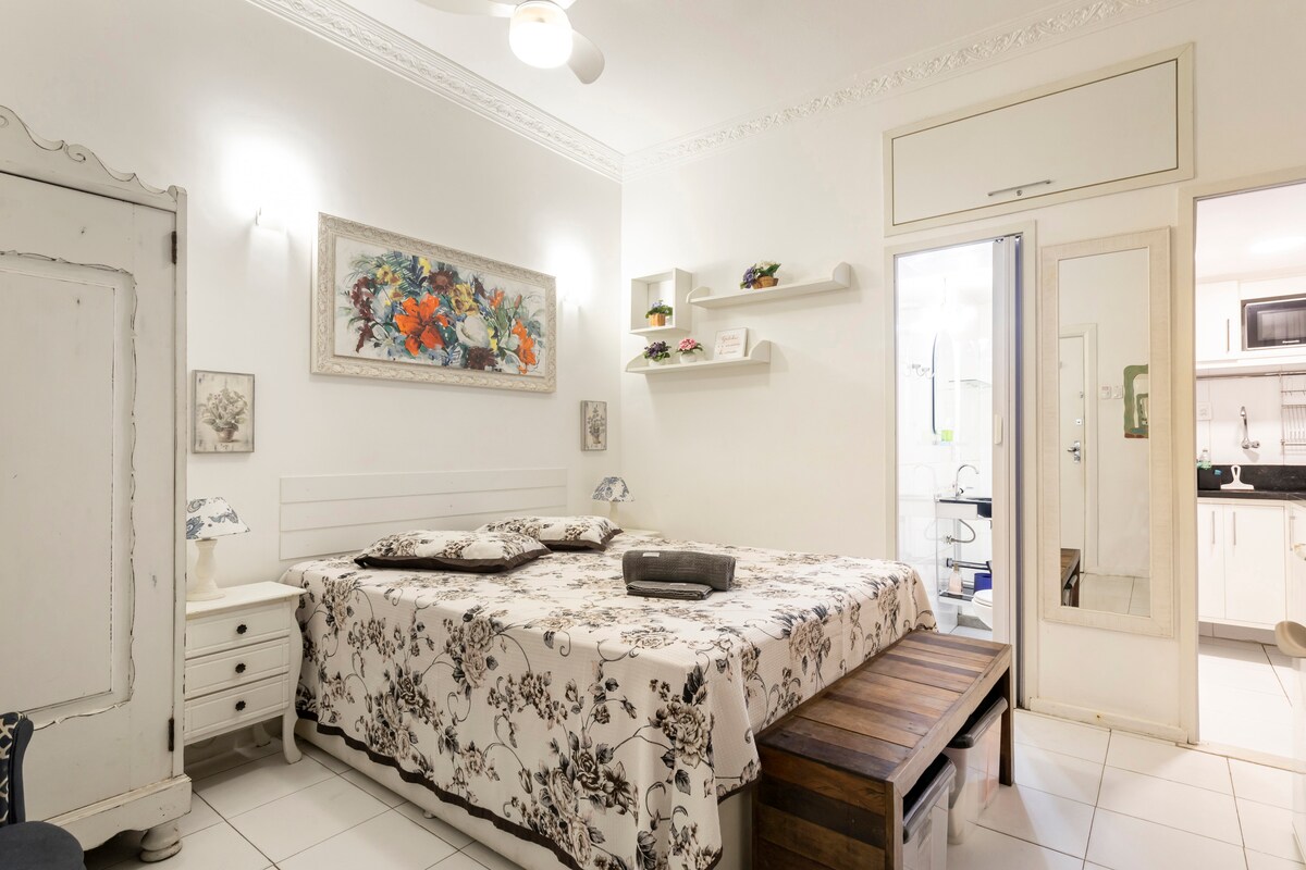 Šarmantni studio dva bloka od poznate plaže Copacabana. Mirno i sigurno područje u 4. postaji. U blizini stanice podzemne željeznice Siqueira Campos, bolnica Copador, Copa Star i São Lucas i s pristupom glavnim gradskim znamenitostima, aerodromu Santos Dumont i Centru. Okruženi restoranima, barovima, supermarketima i ogromnim prodavnicama. Naš studio ima sobu, 1 prostran i udoban bračni krevet, klima uređaj, stropni ventilator, Wi-Fi (350 Mb), TV , potpuno opremljenu kuhinju i kupatilo.