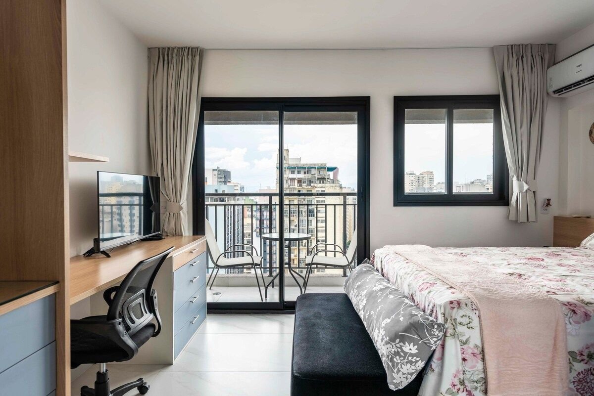 *Partner u 6x bez interesa* Stúdio stvoren za vas, zalijepljen stanicom Republica do Subrô. Dolazite li u SP zbog slobodnog vremena ili posla? Ovo je to mjesto! Elektronska brava USB utičnice Posteljina u krevetu i kupatilu Potpuno opremljena kuhinja Slobodno vrijeme uz bazen, sauna i jacuzzi na terasi (25. sprat) Igraonica s bazenom i teretanom na samom ulazu! Prozori/balkon s bukom. Odlično kupatilo zbog centralnog grijanja. Balkon je otvoren za pogled koji oduzima dah s 22. sprata. 24-satna sigurnosna stanica u zgradi.