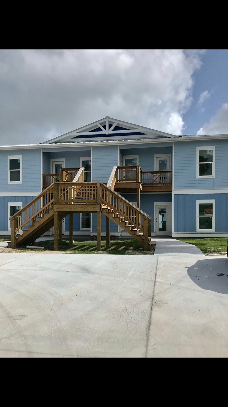 Naša jedinica je u prizemlju i dijeli samo jedan zid sa komšijama, to je cigla, tako da ih uopšte ne čujete! Nedavno ažurirano i preuređeno s modernim sadržajima i dragocjenim dekorom! 2 spavaće sobe i 2 kupatila! U njemu može udobno spavati 8 osoba. Nalazimo se u El Cortez Villas u blizini HWY 361 nedaleko od prvog prilaza plaži, ili možete koristiti šetalište i hodati ili voziti svoje vozilo za golf. Mašina za pranje/sušenje veša u jedinici. Imamo 2 terase, a kompleks ima 2 bazena. Wi-Fi, kablovska i ROKU-enable