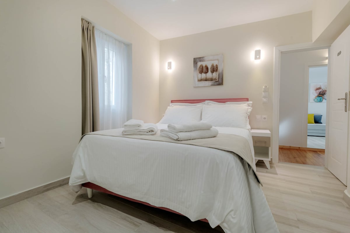 Shinny, topao i gostoljubiv dvoetažni stan koji se nalazi u historijskom centru grada. Stan se ističe nevjerovatnim pogledom na beskrajno plavetnilo Jonskog otvorenog mora. U prizemlju se nalazi dnevni boravak, kuhinja i trpezarija za 5 osoba. Na spratu su dvije spavaće sobe, kupatilo i čitaonica. To je idealan izbor koji vam je potreban za opuštanje, ili morate biti dio - puno energije - života na Krfu!
