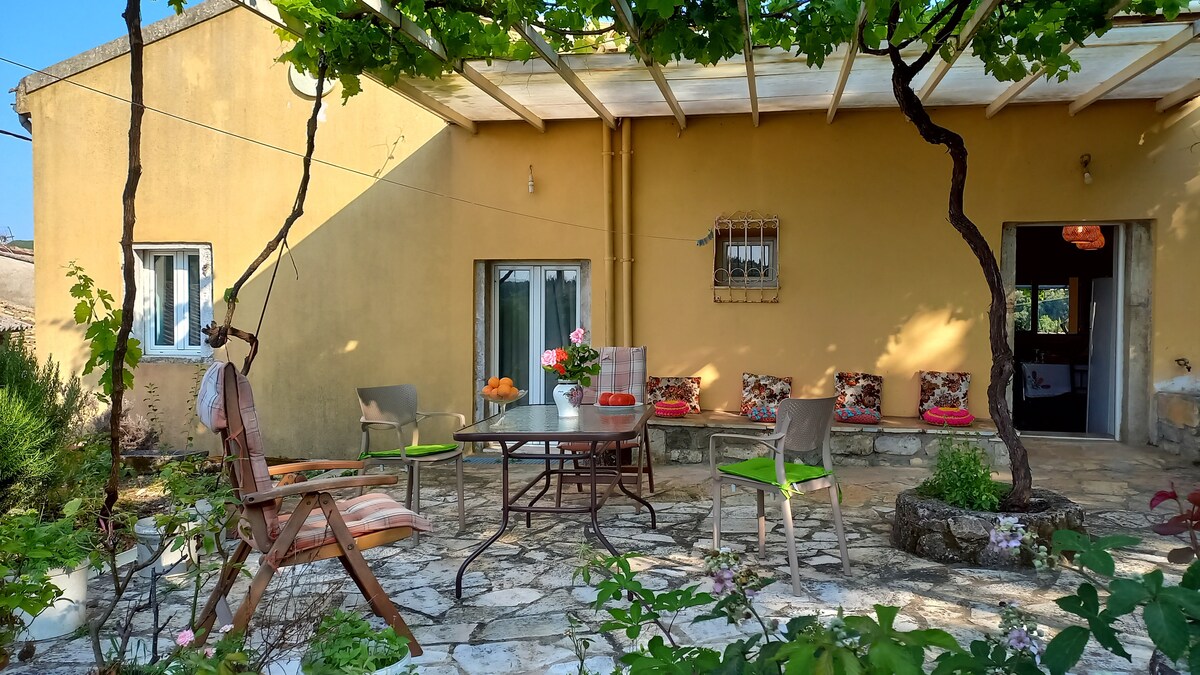 Our house is a lovely three-storey traditional house in the village of Chlomos in South Corfu. Our village has 500 inhabitants in the summer and is 5 minutes from the unique beach of Issos and 4km from Messonghi as well as from the fishing village of Boukari where you can eat fresh fish. It can accommodate 4-5 people. It has 2 bathrooms and all the electrical appliances you will need. It has free Wi-Fi, air conditioning on every floor, and Netflix.